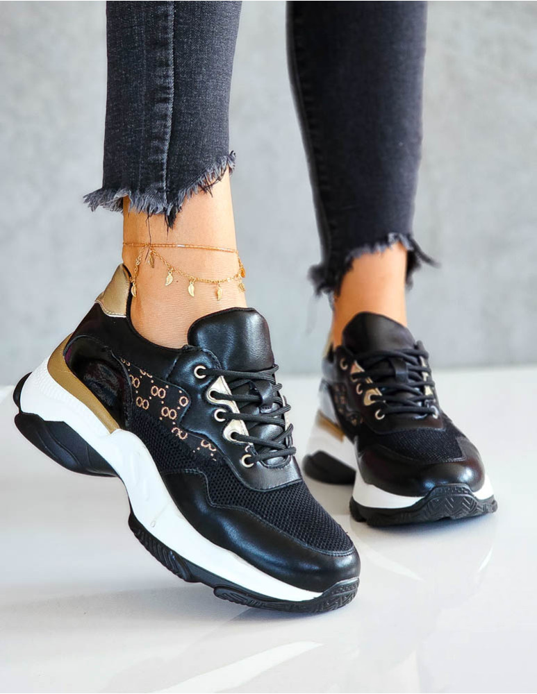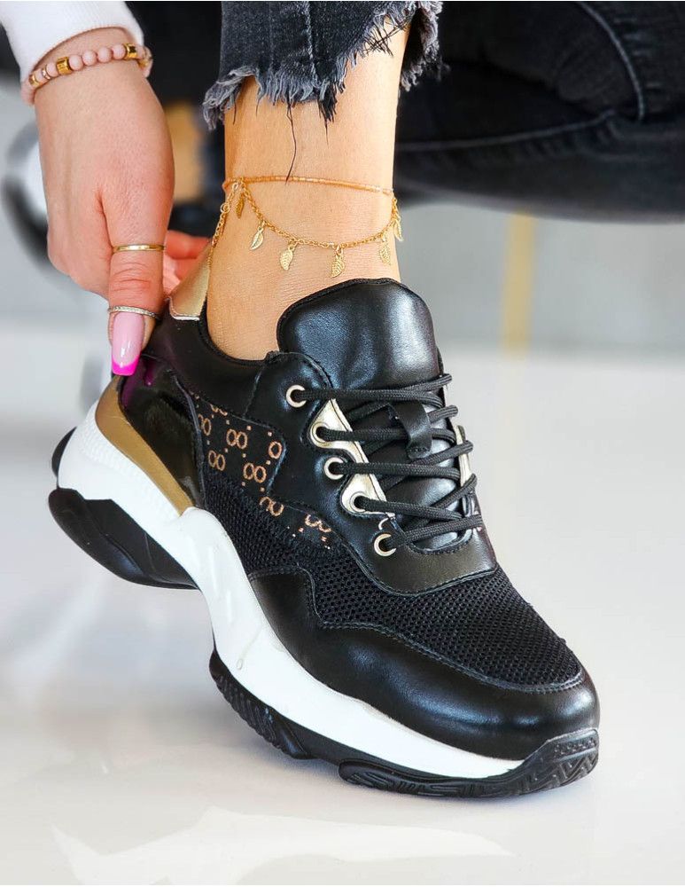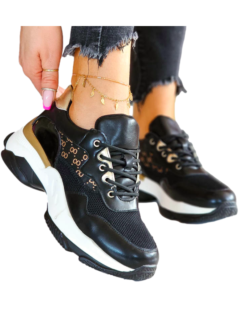 Czarne Buty Sportowe Na Platformie Gold Gorgio
