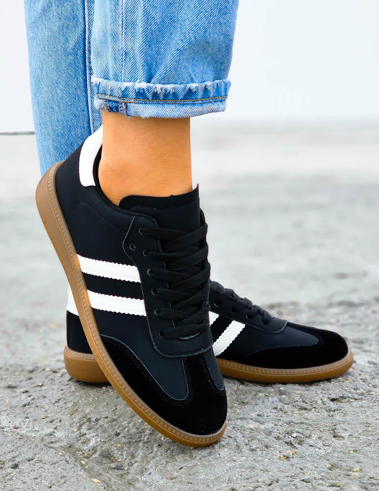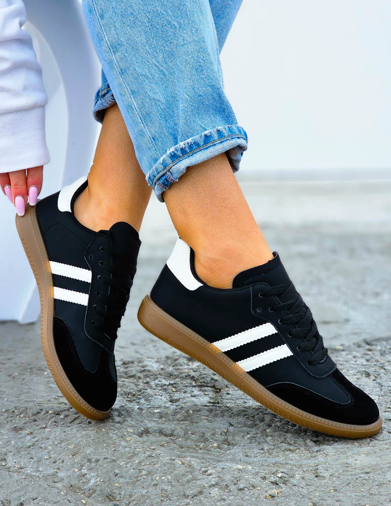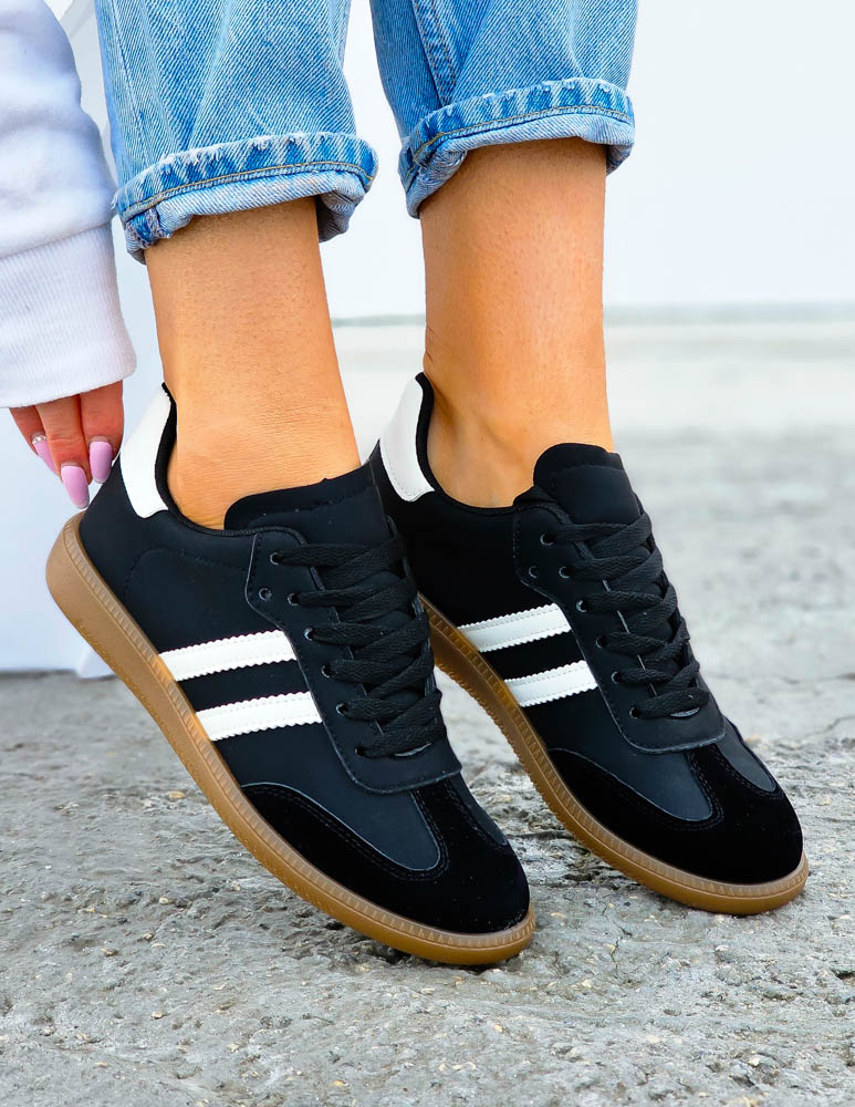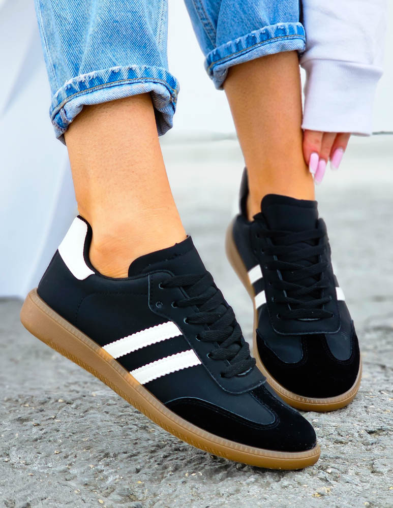 - ❤Ultra kobiece czarne adidasy z białymi paskami
