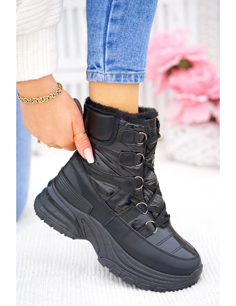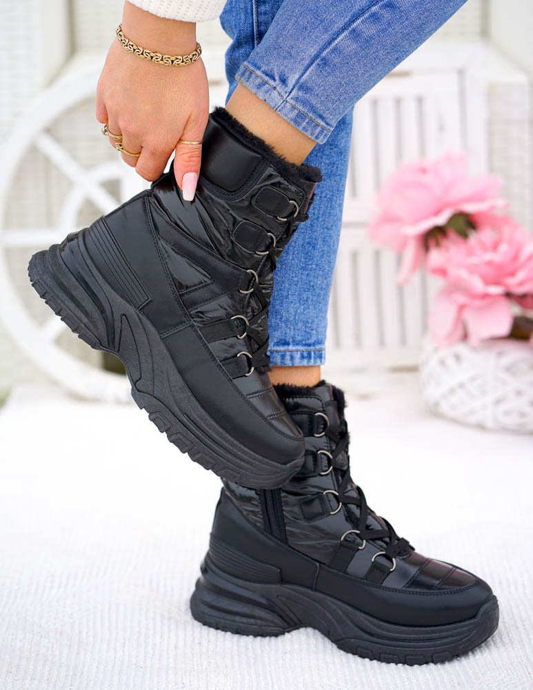 Czarne Buty Zimowe Ocieplane Śniegowce Z Futrem Sky