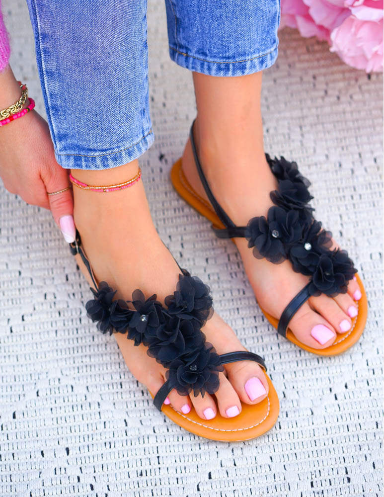 Sandały Na Płaskim Spodzie Kwiaty Black Rose