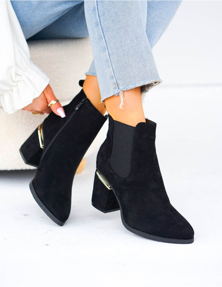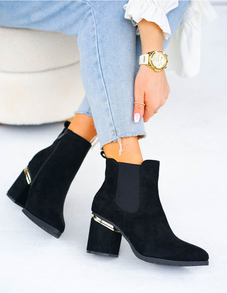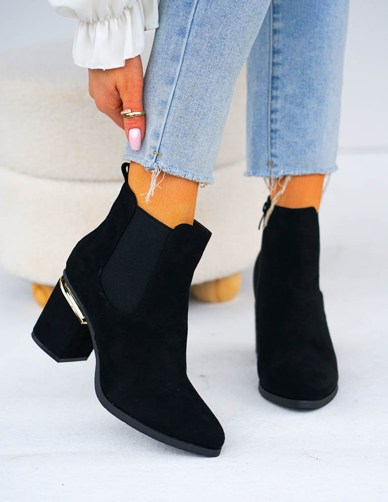 Czarne Klasyczne Zamszowe Botki Na Obcasie Fenny