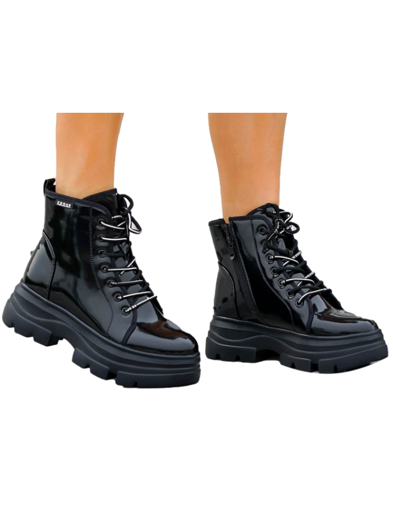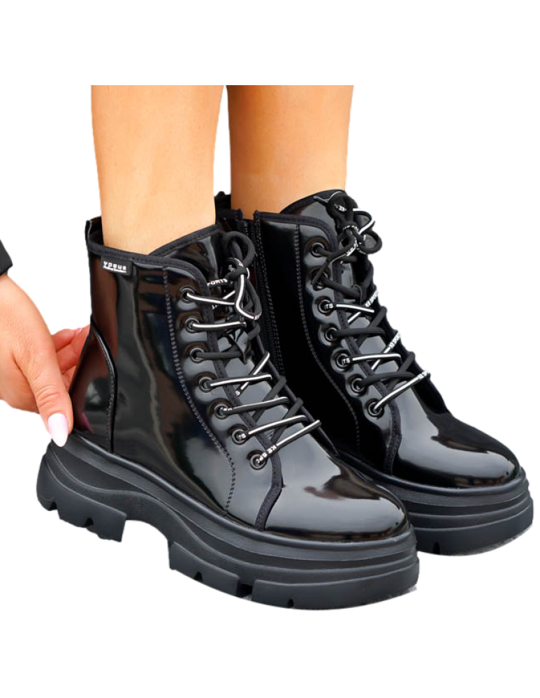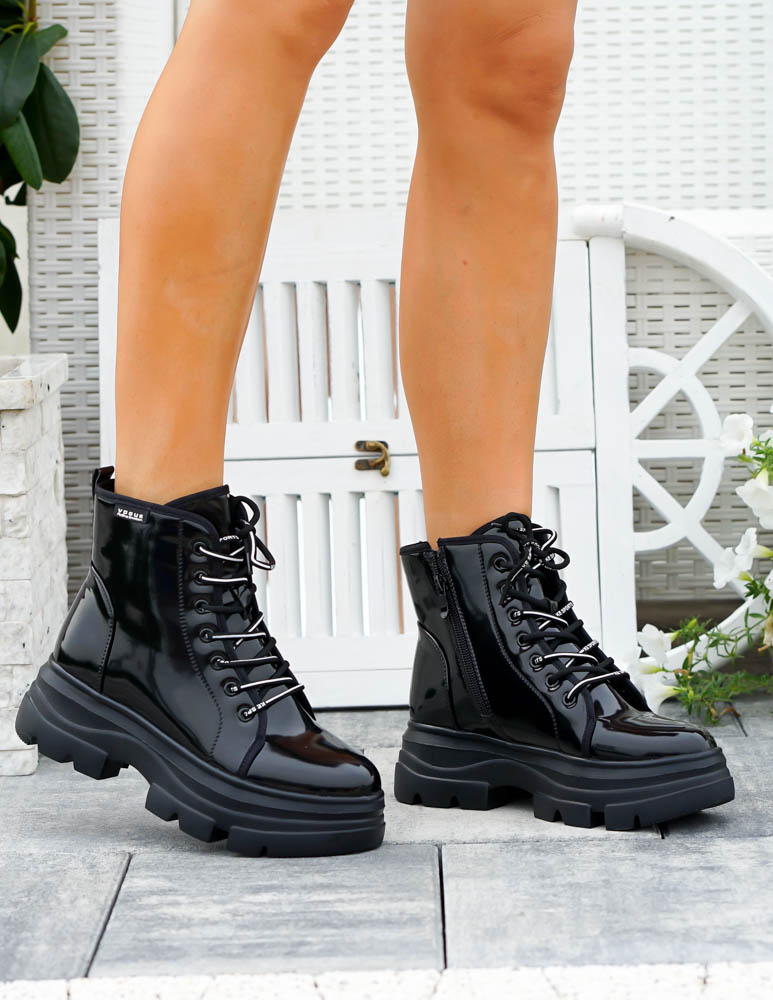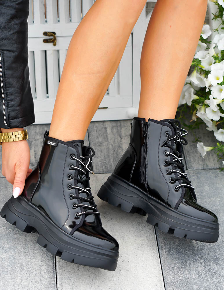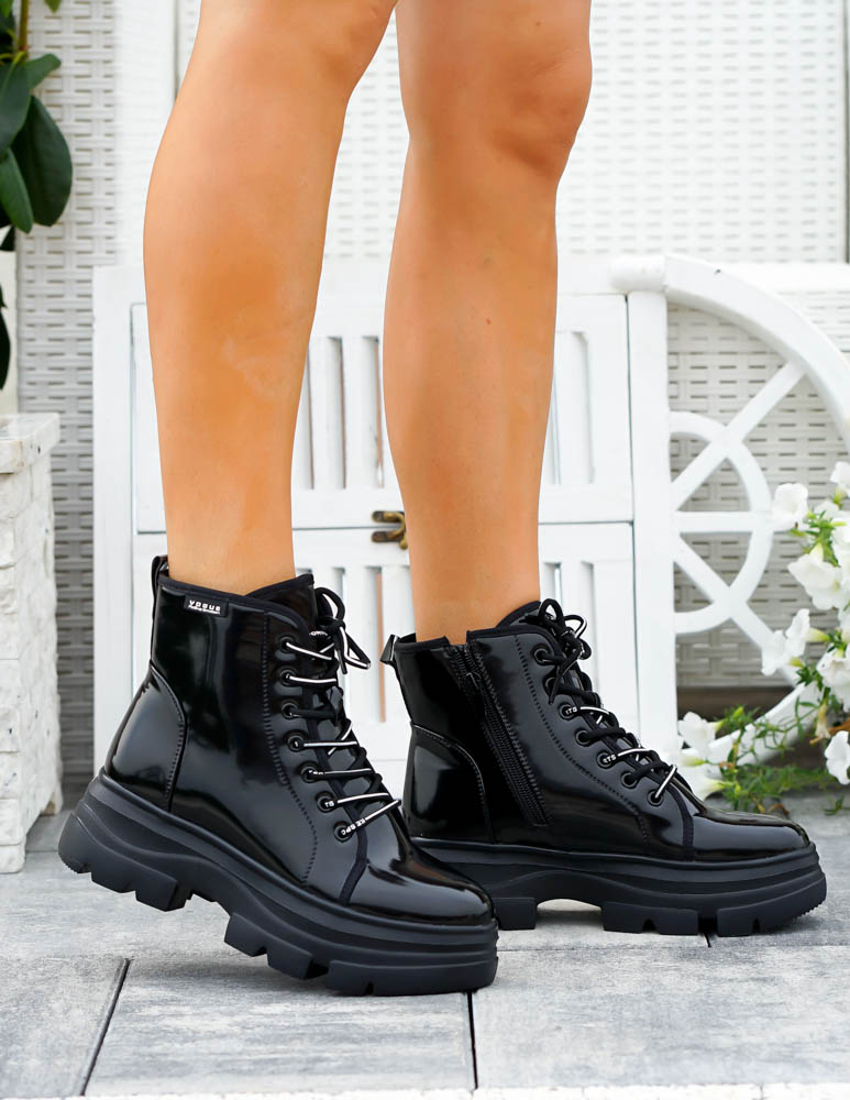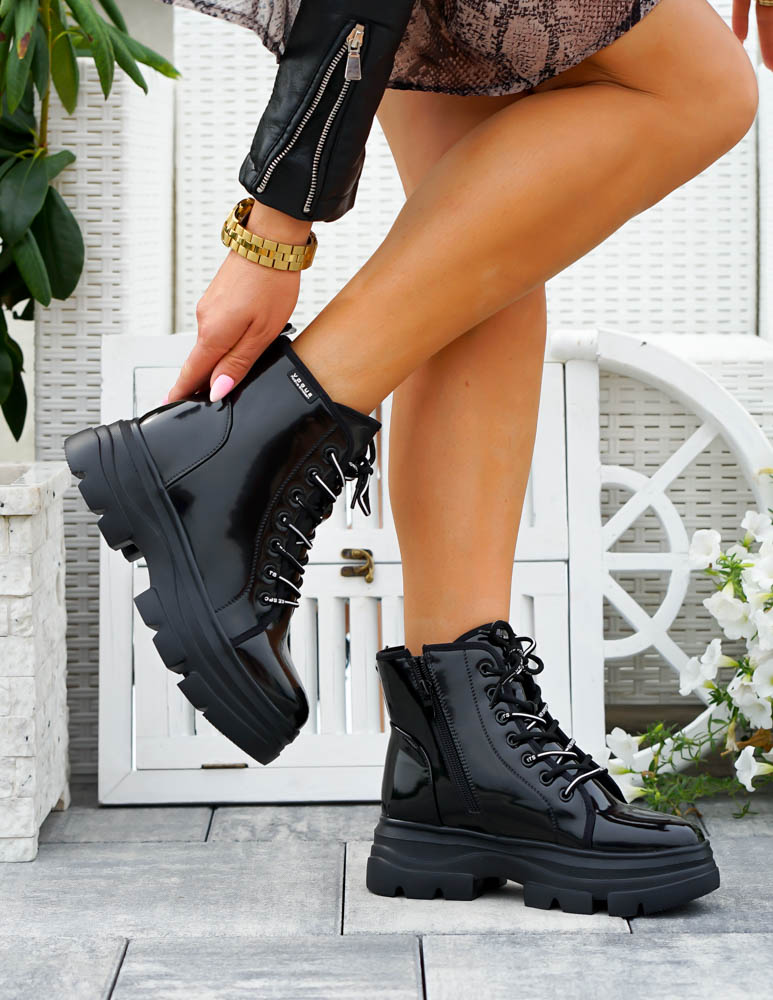 - Kod produktu: Czarne Glany Botki Damskie Workery Lakierowane Alisia