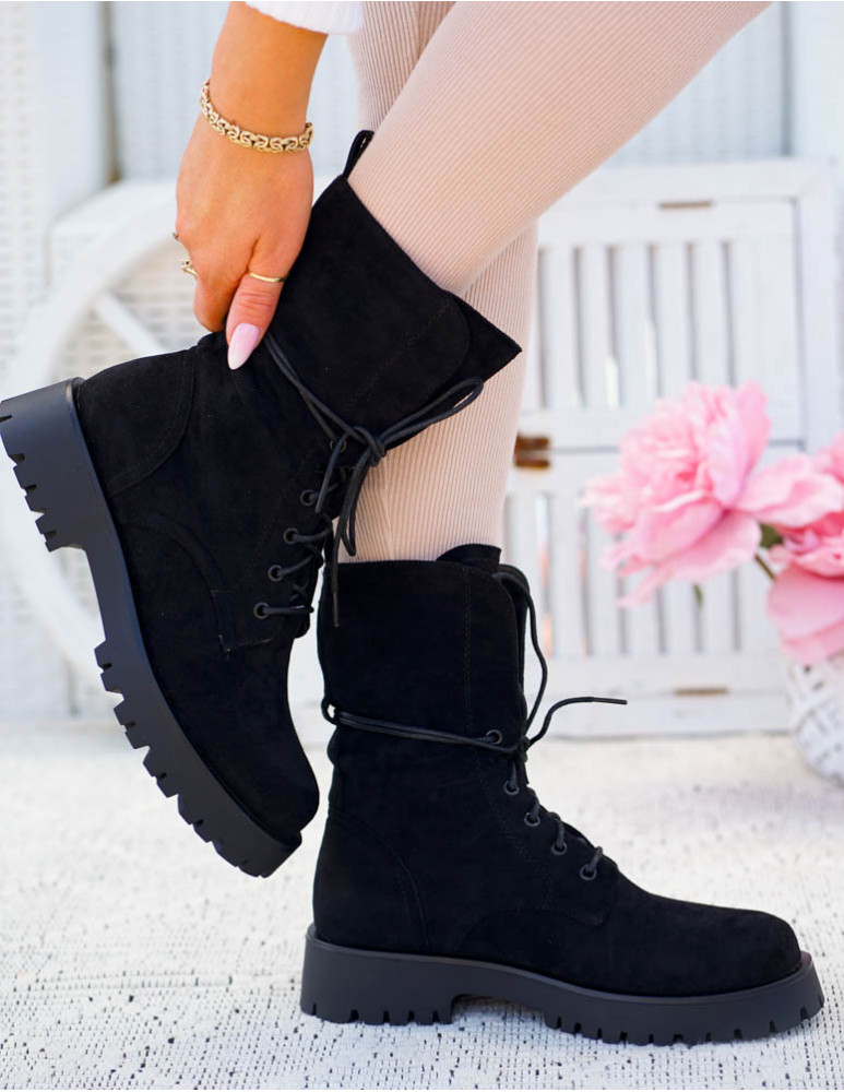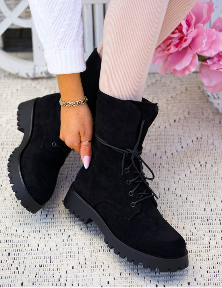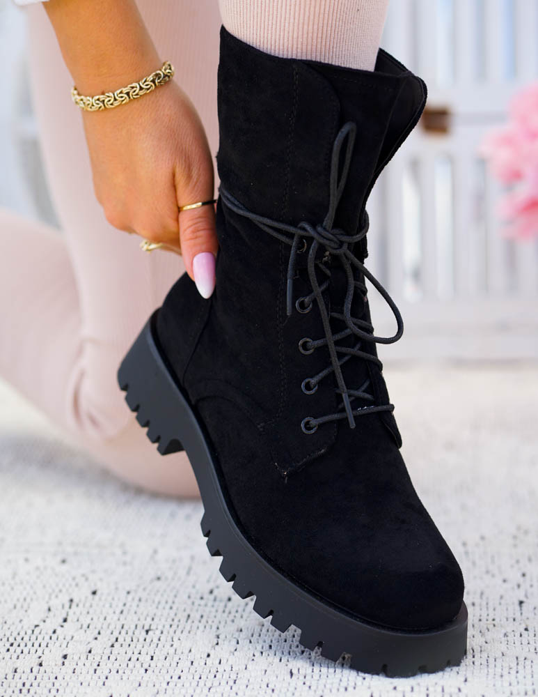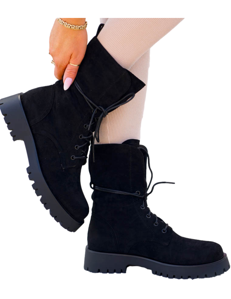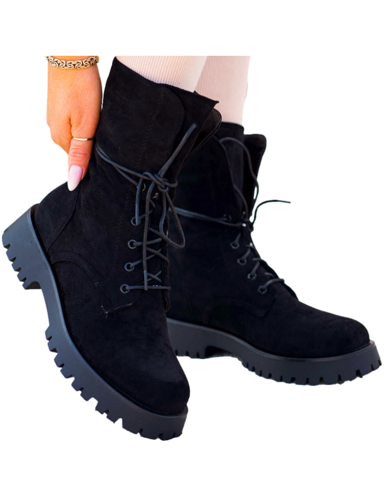 - Kod produktu: Czarne Glany Botki Zamszowe Sznurowane