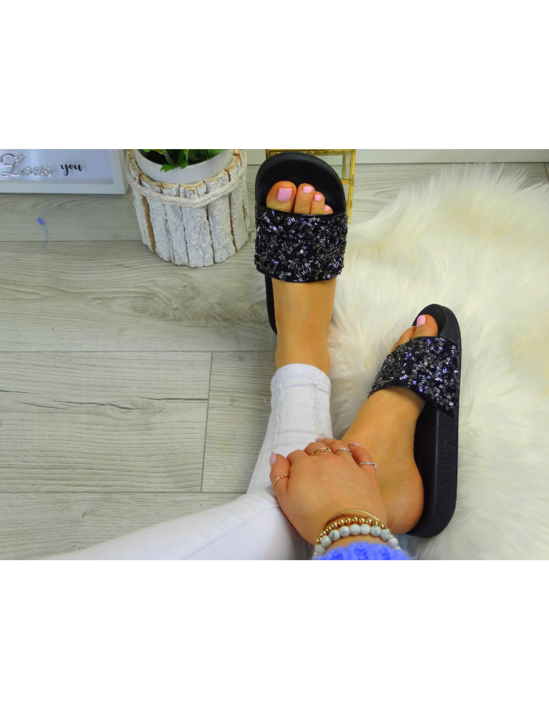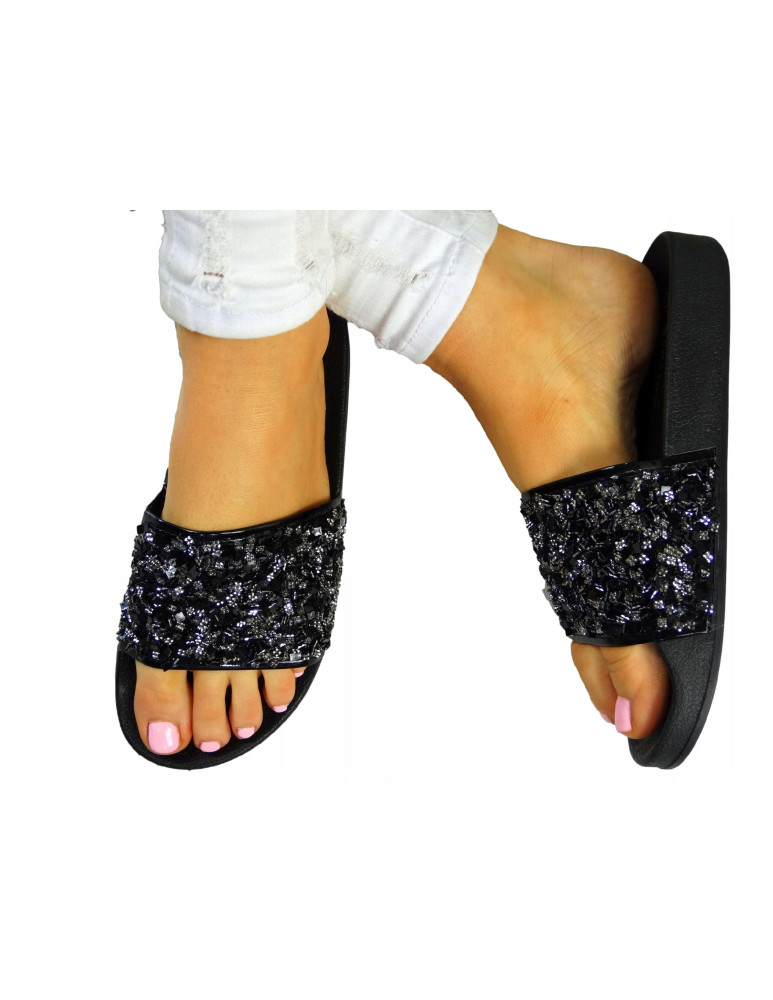 - Kod produktu: Czarne Klapki Damskie Na Lato Z Kryształkami
