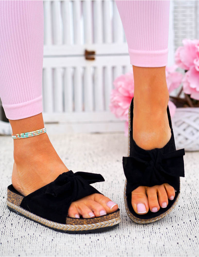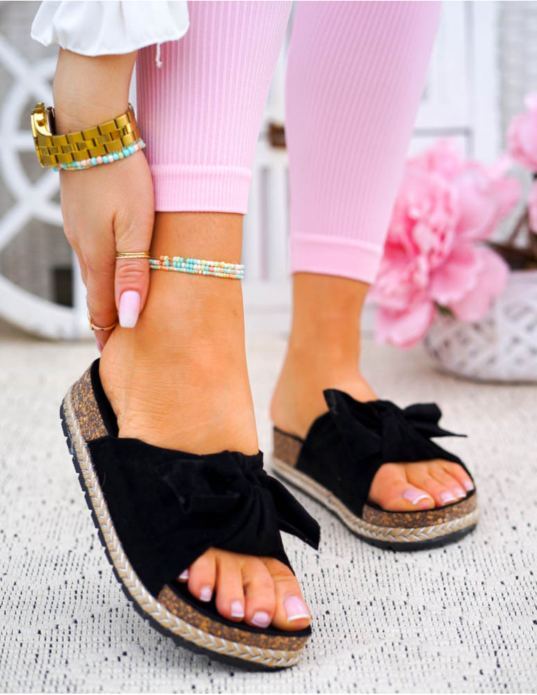 ❤Lekkie klapki damskie❤Czarne klapki z kokardką❤Modne i tanie buty on-lineLekkie klapki damskieWykon..