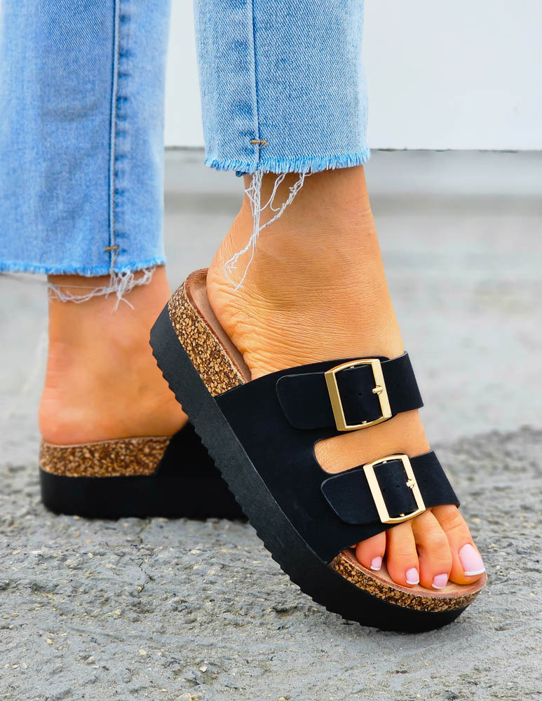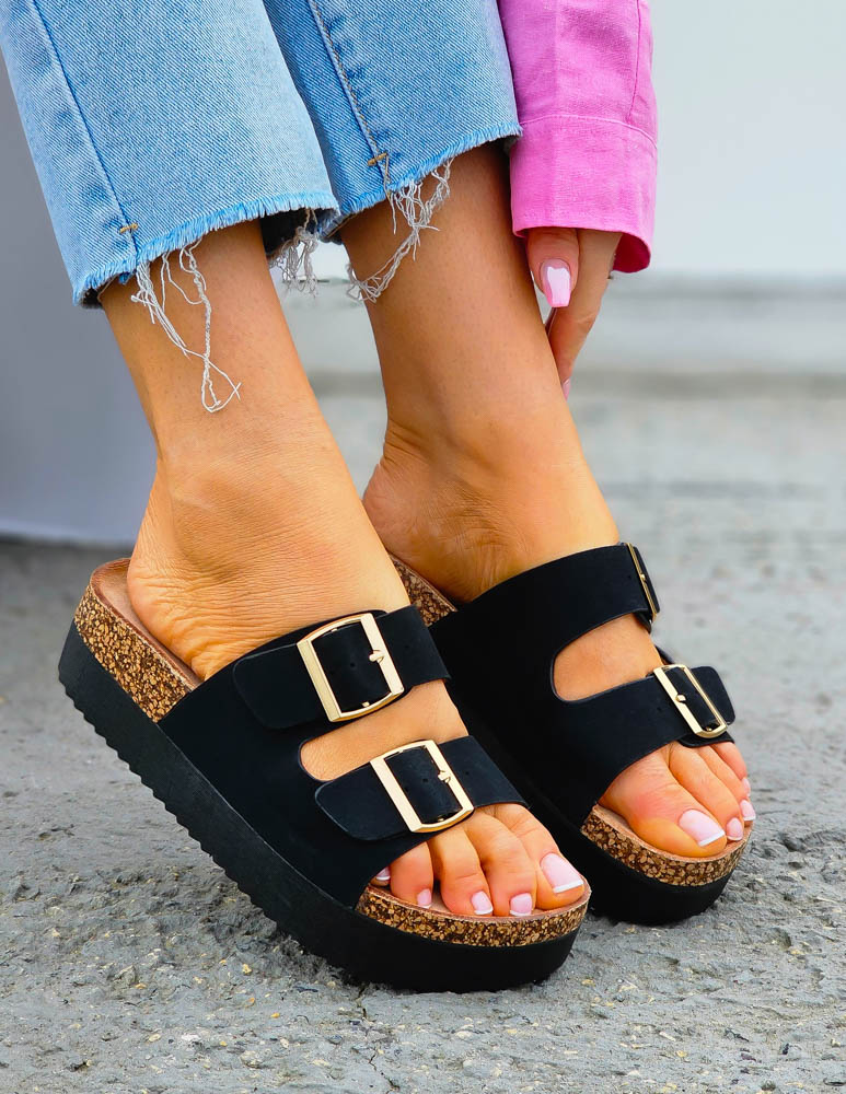 ❤Czarne klapki na korkowej podeszwie