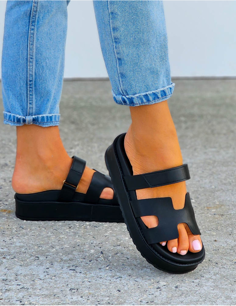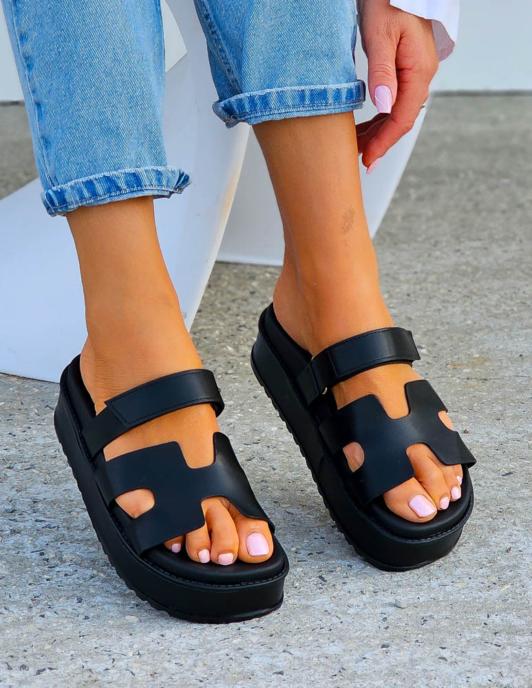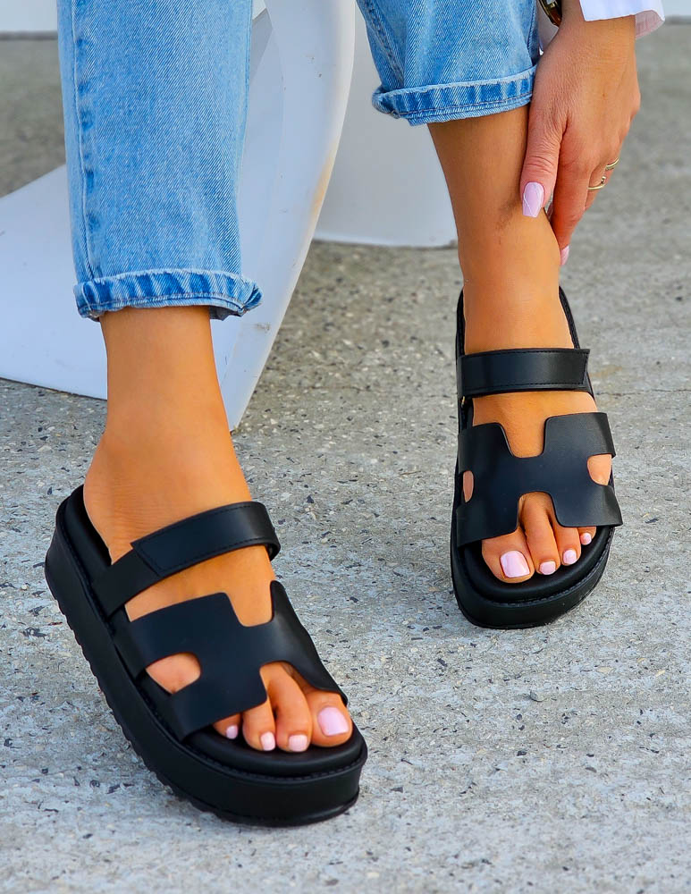 Czarne Klapki Na Platformie Hernes Black
