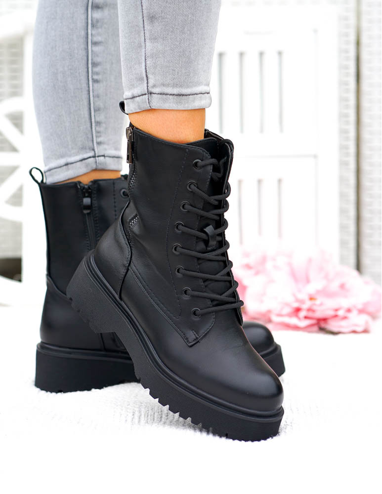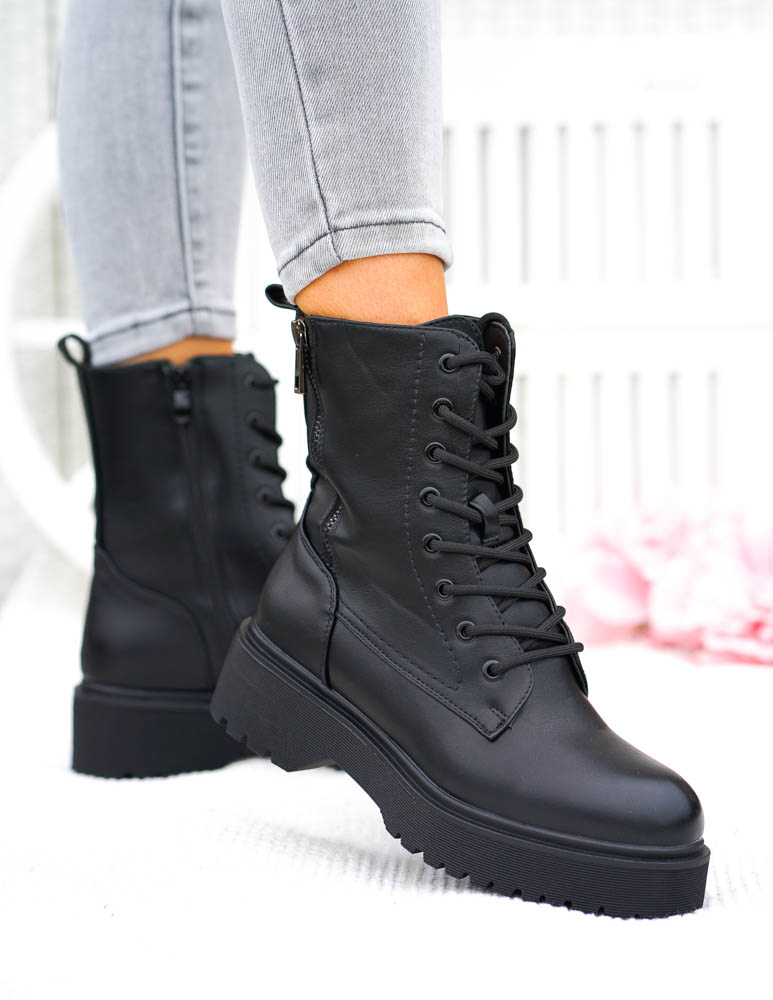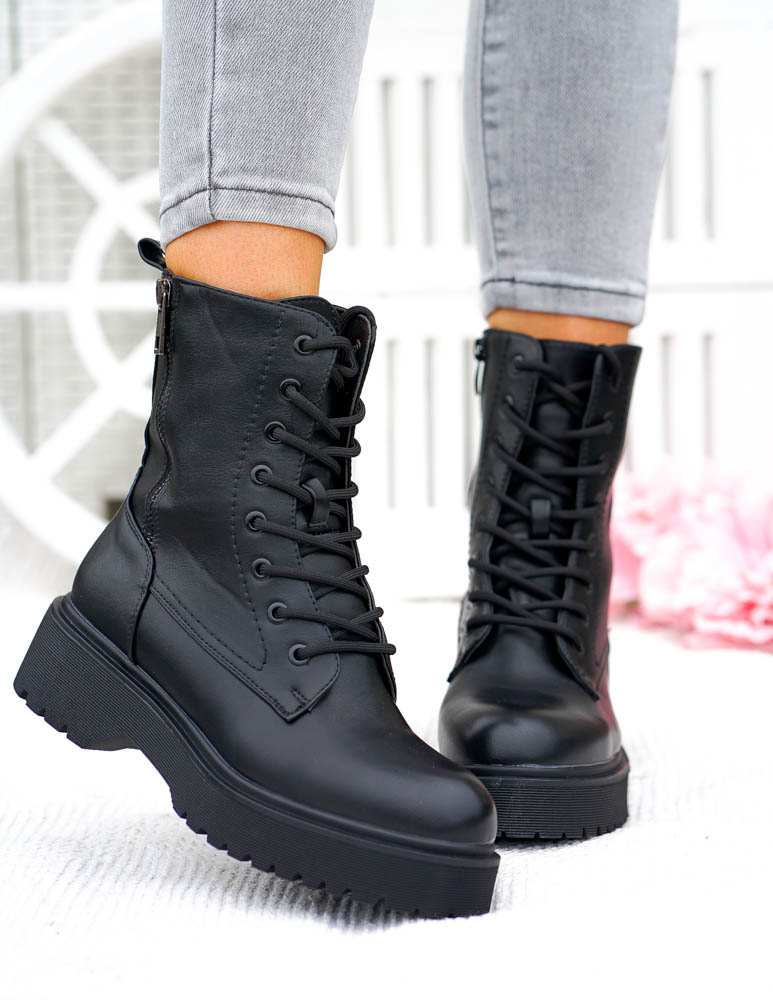 Czarne Klasyczne Botki Na Grubej Podeszwie Glany Berry