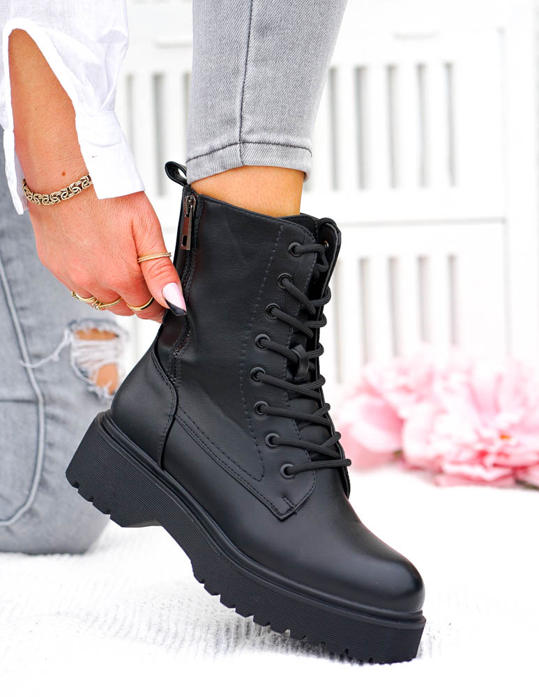 - Kod produktu: Czarne Klasyczne Botki Na Grubej Podeszwie Glany Berry
