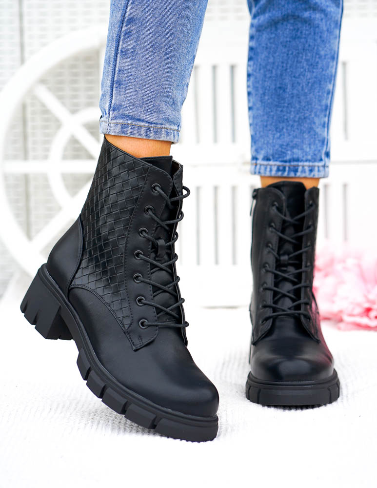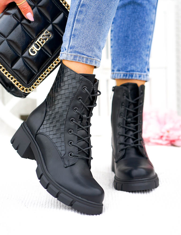 Czarne Klasyczne Botki Na Grubej Podeszwie Glany Modive