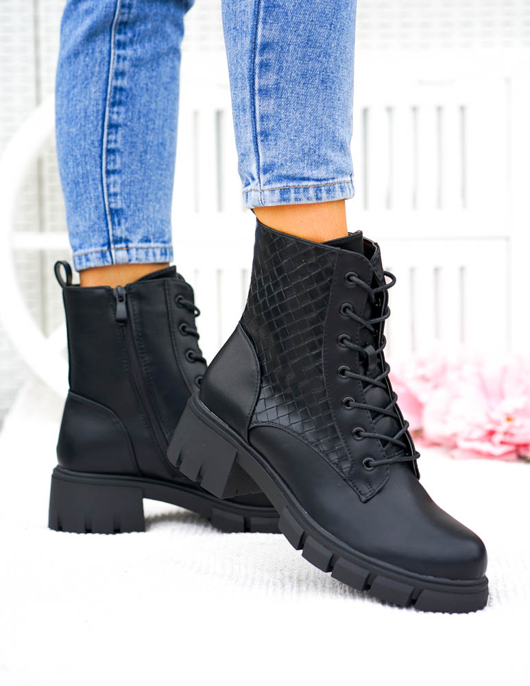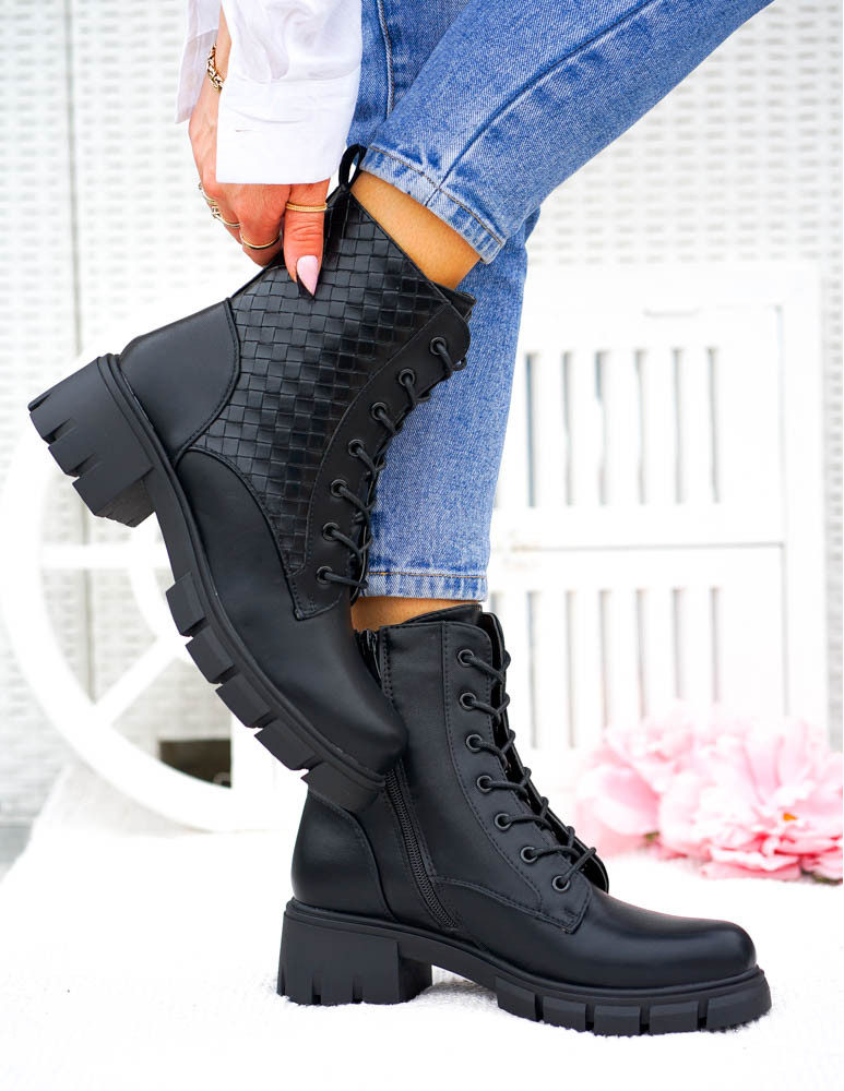 Czarne Botki Workery Glany Damskie Favritto