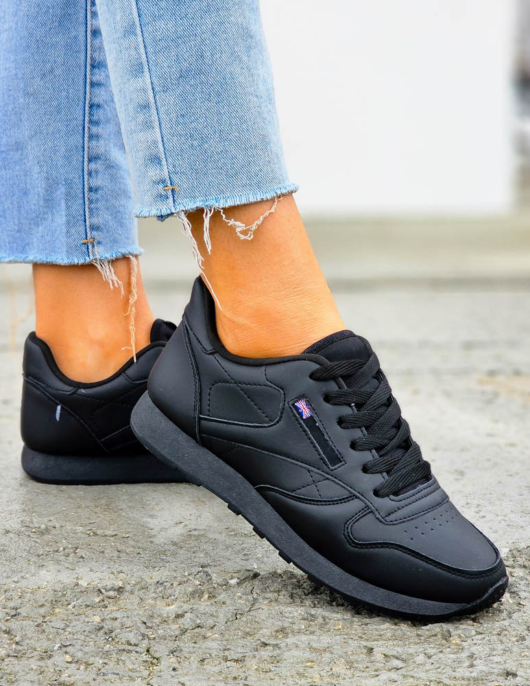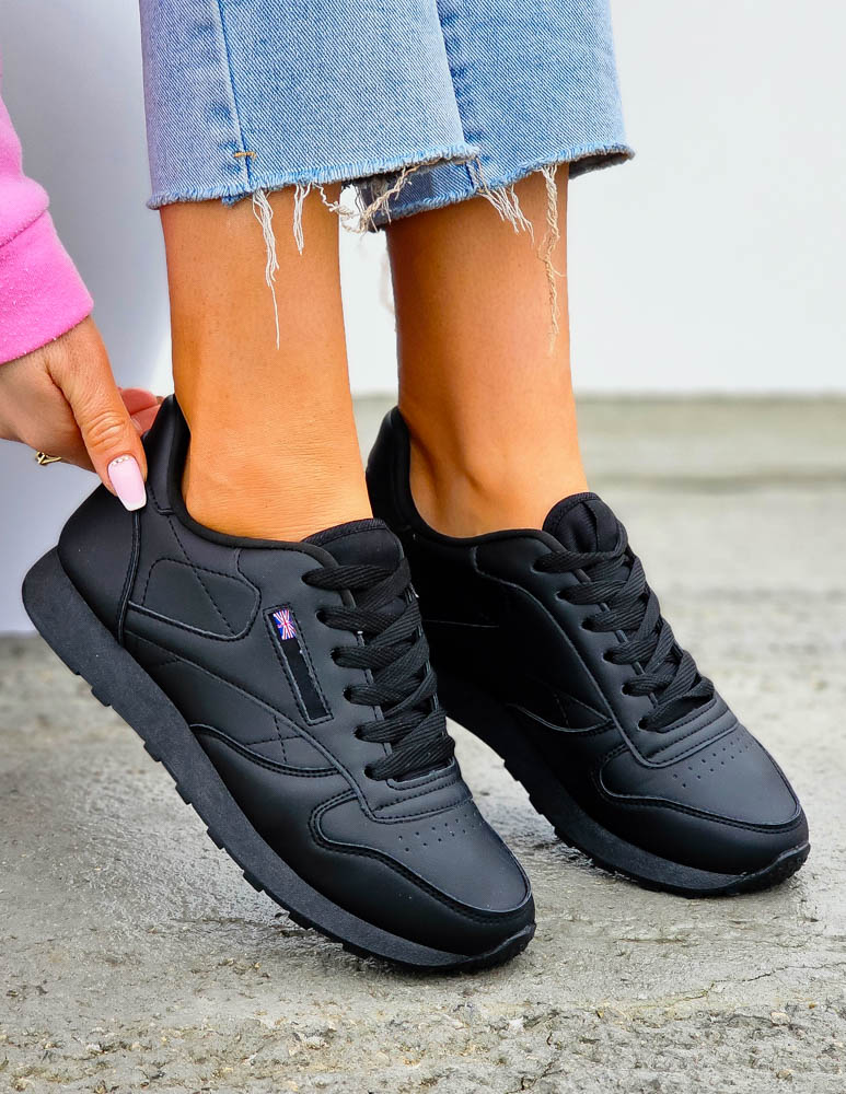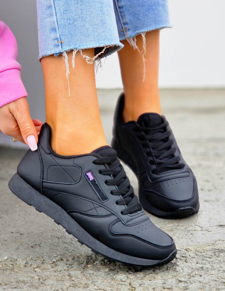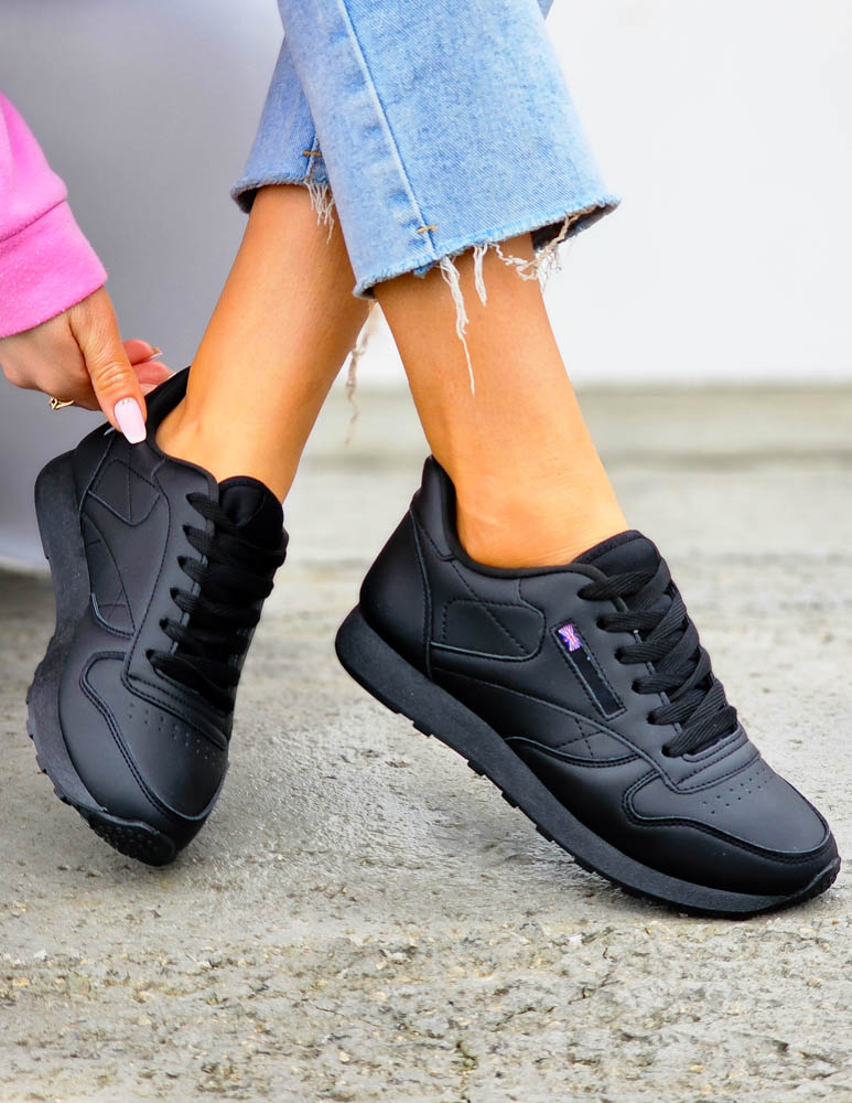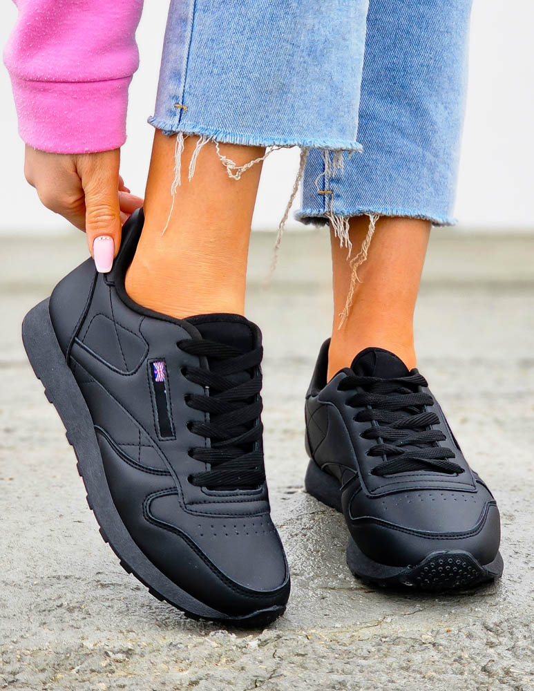 - Kod produktu: Czarne Klasyczne Buty Sportowe Damskie Ze Skóry Rebels