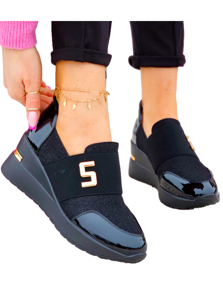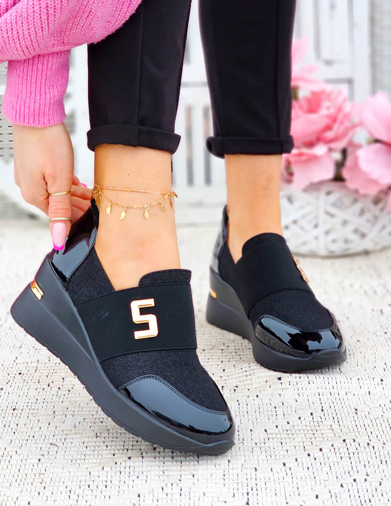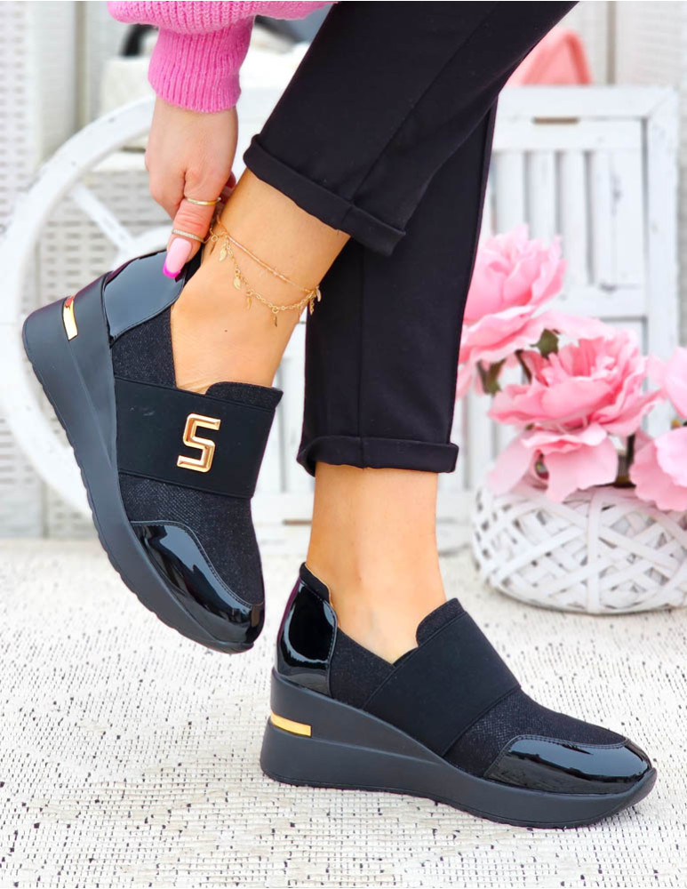 Czarne Lekkie Buty Sportowe Damskie Wciągane Manila