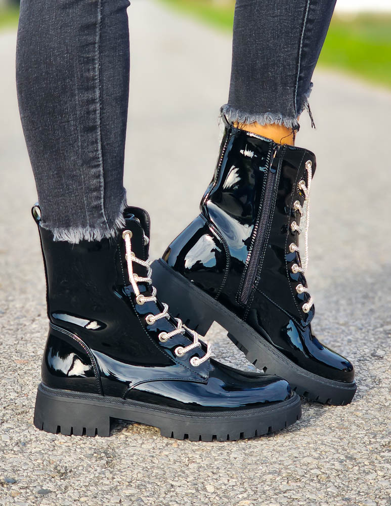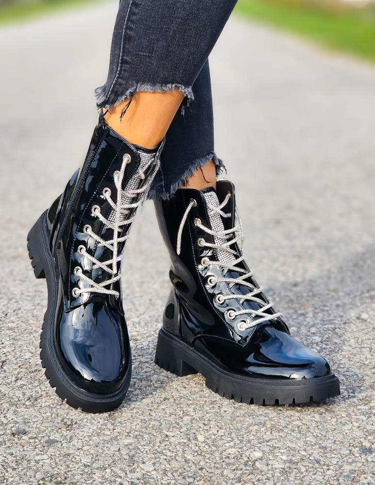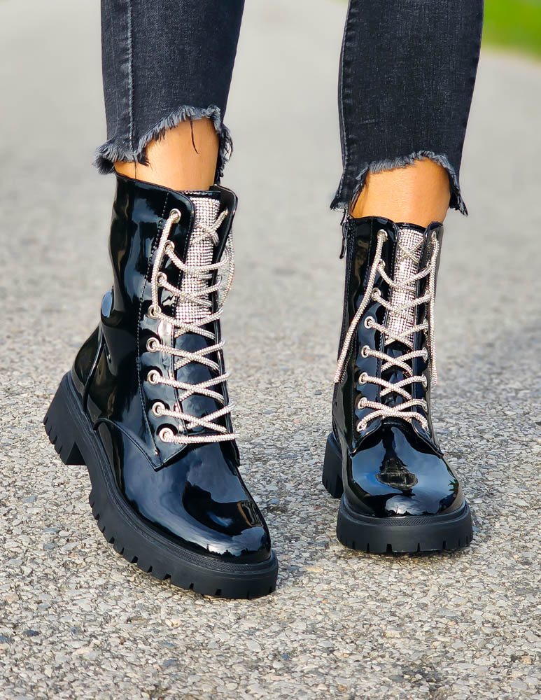 Czarne Lakierowane Botki Glany Hernes Ocieplane