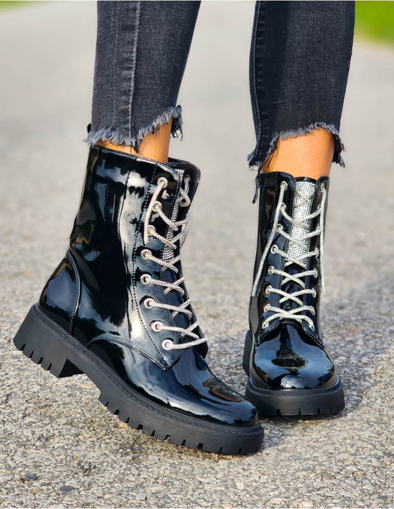 • Kod produktu: Czarne Lakierowane Botki Glany Hernes Ocieplane