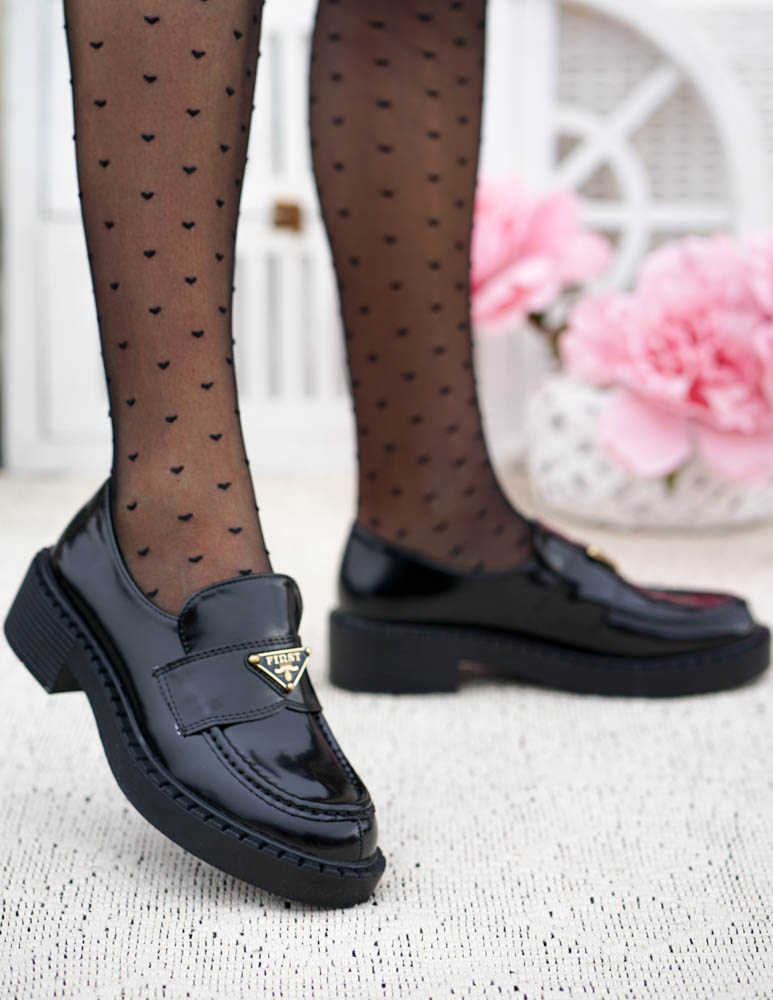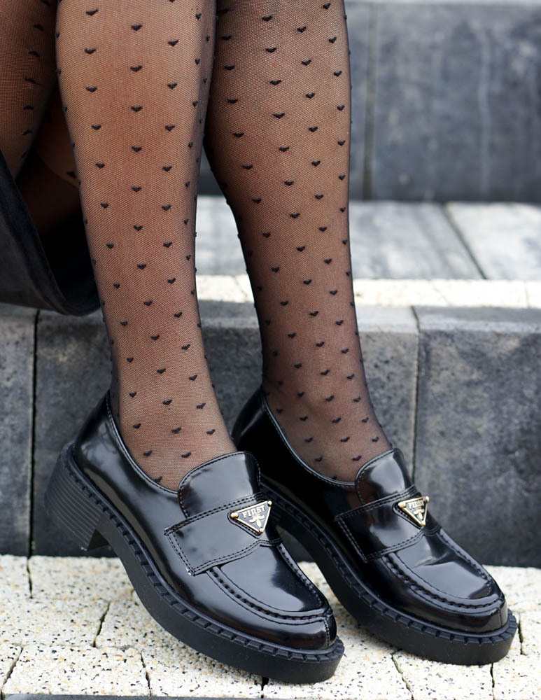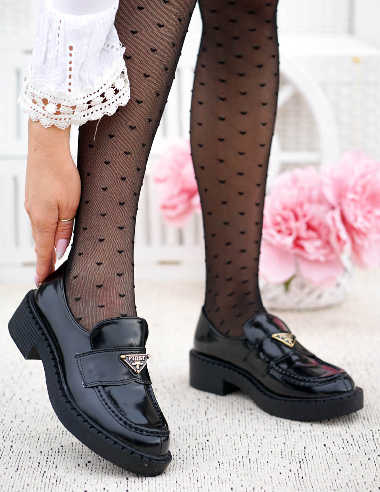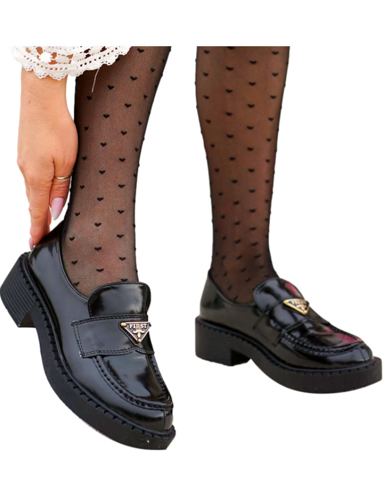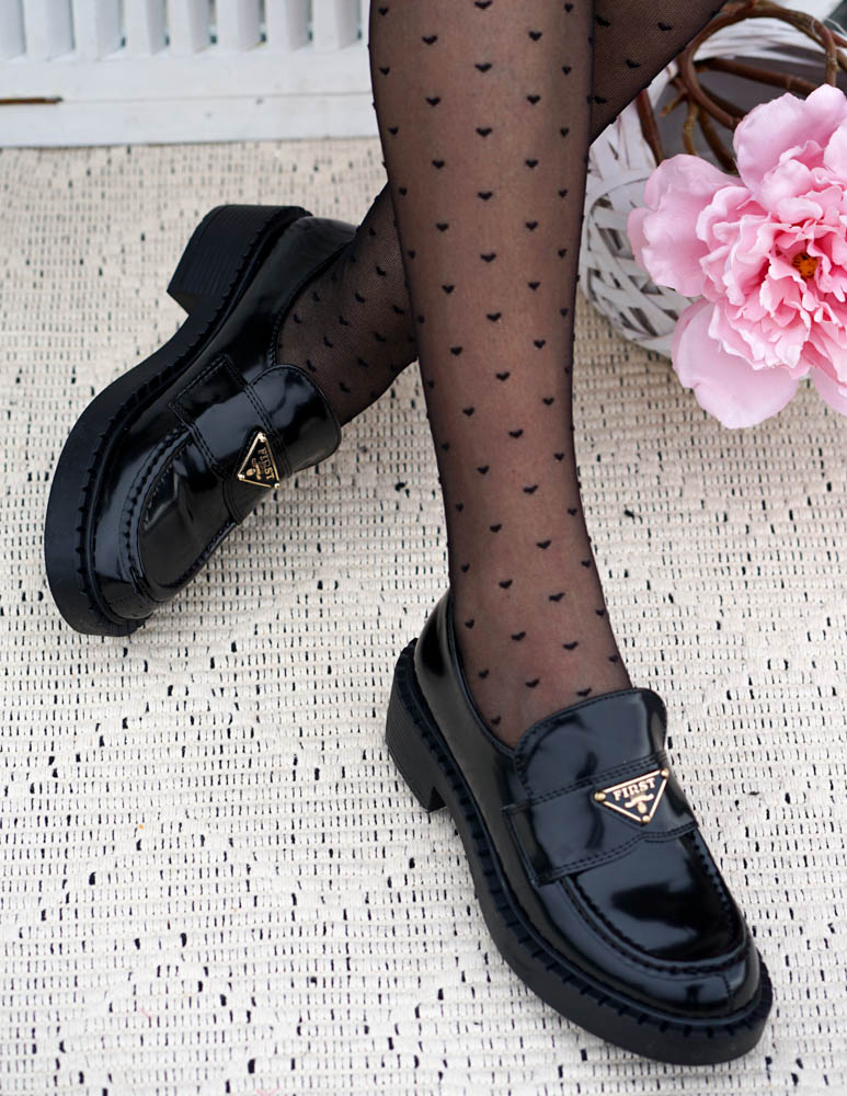 - Kod produktu: Czarne Lakierowane Mokasyny Gruba Podeszwa Prade