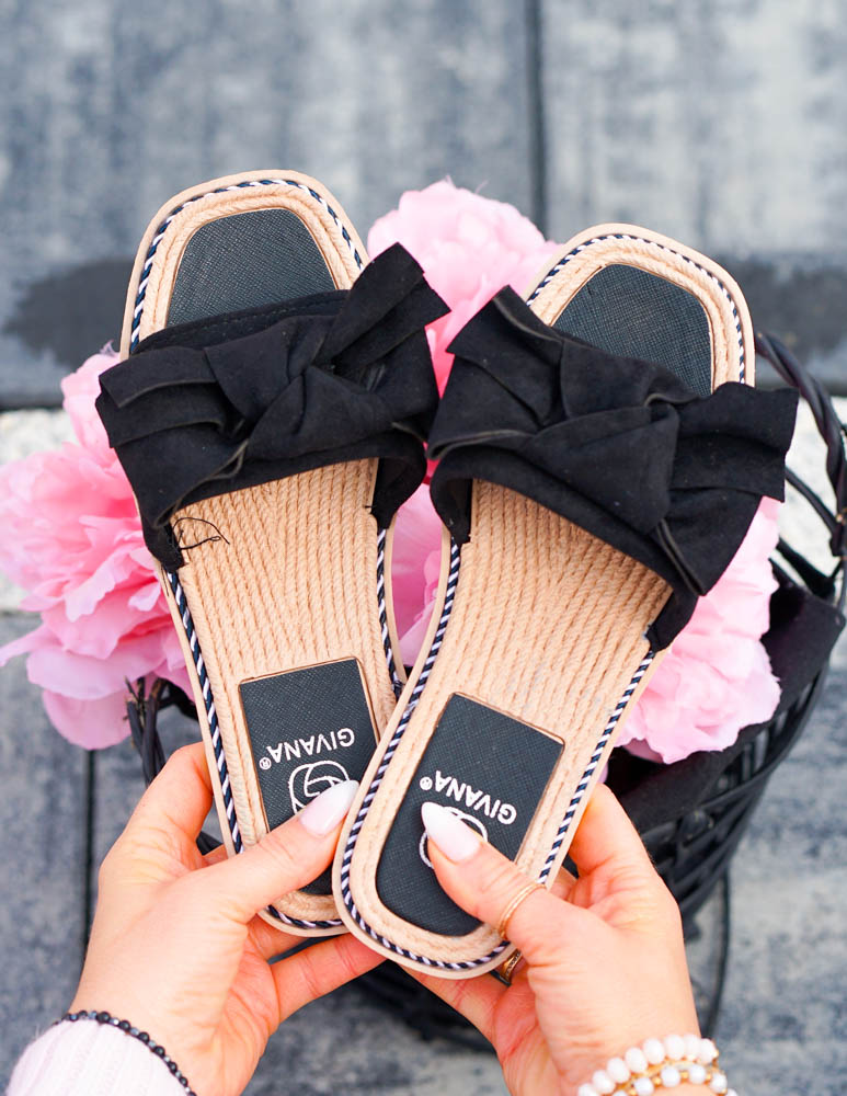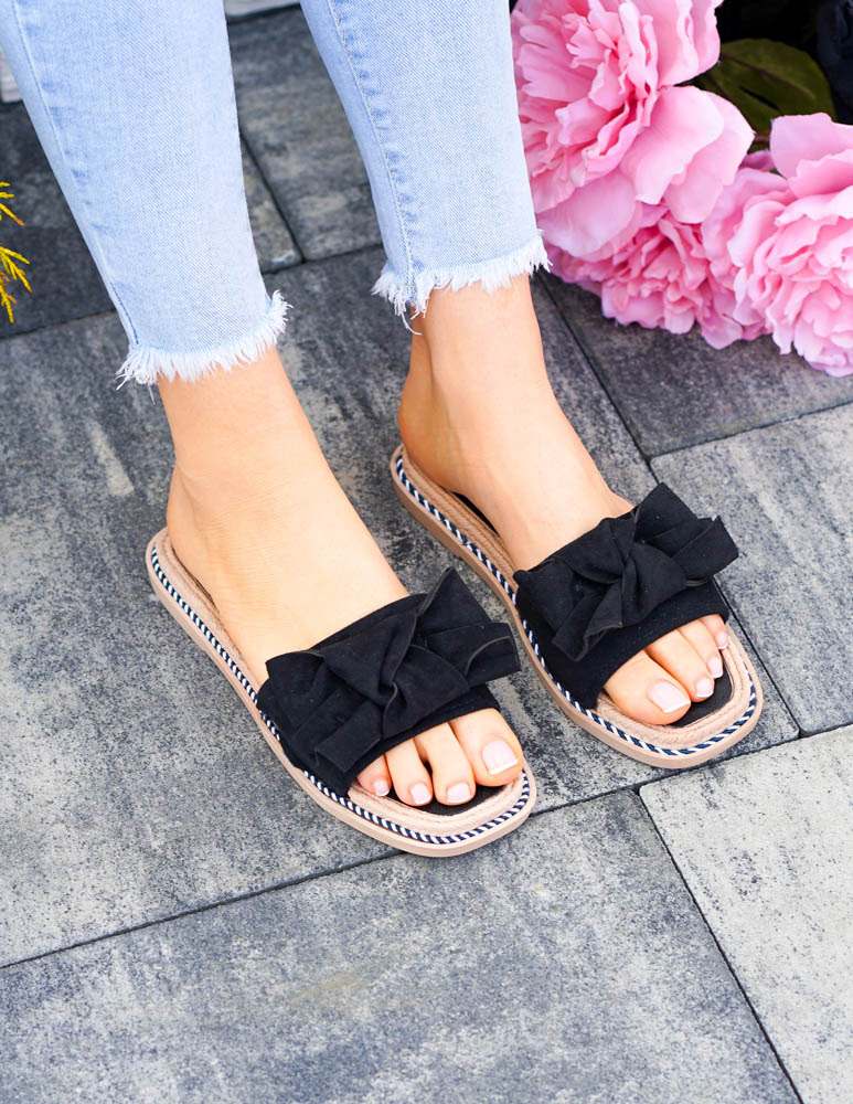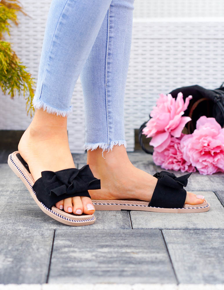 Czarne Lekkie Klapki Damskie Z Kokardką