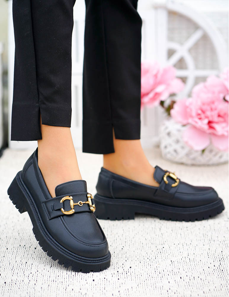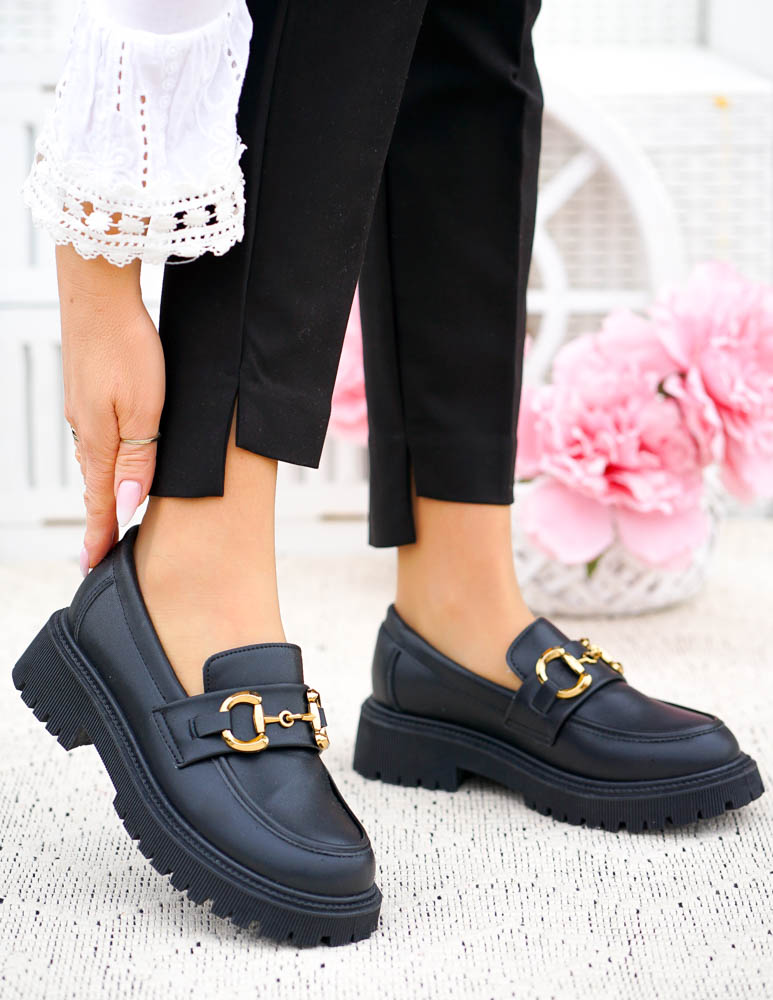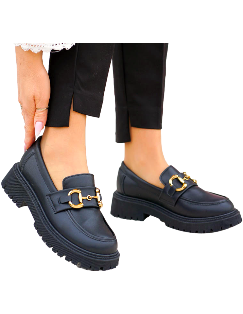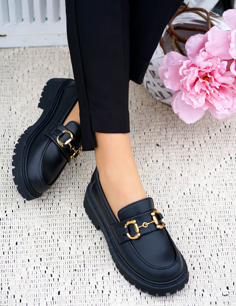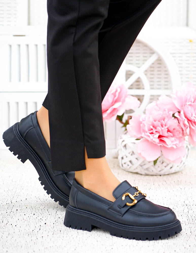 - Kod produktu: Czarne Mokasyny Na Grubej Podeszwie Ze Skóry Classic
