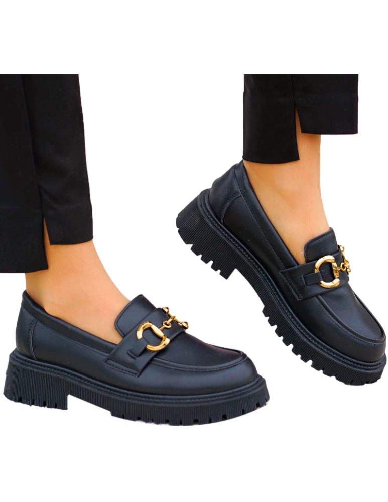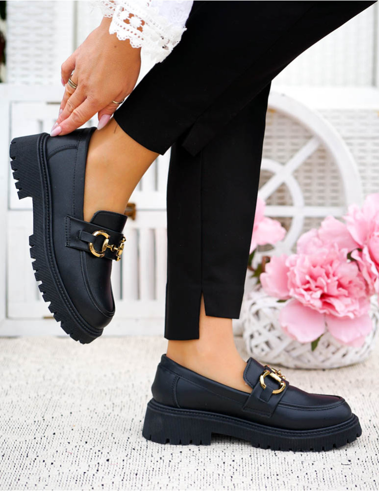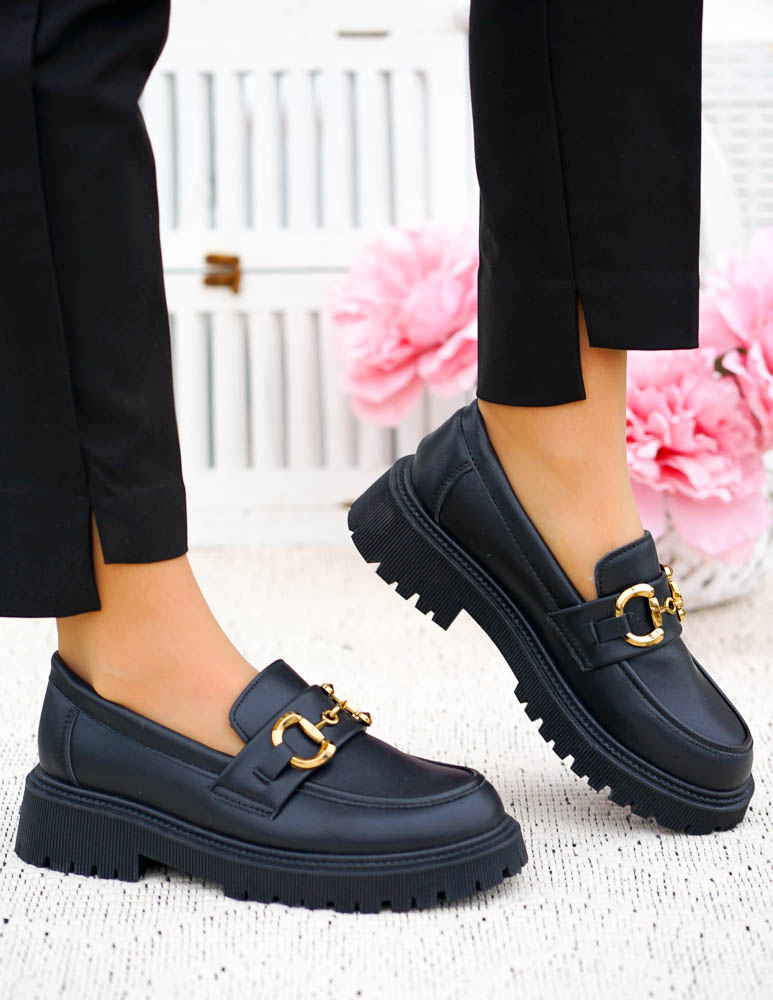 Czarne Mokasyny Na Grubej Podeszwie Ze Skóry Classic
