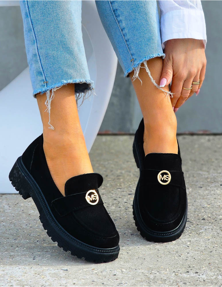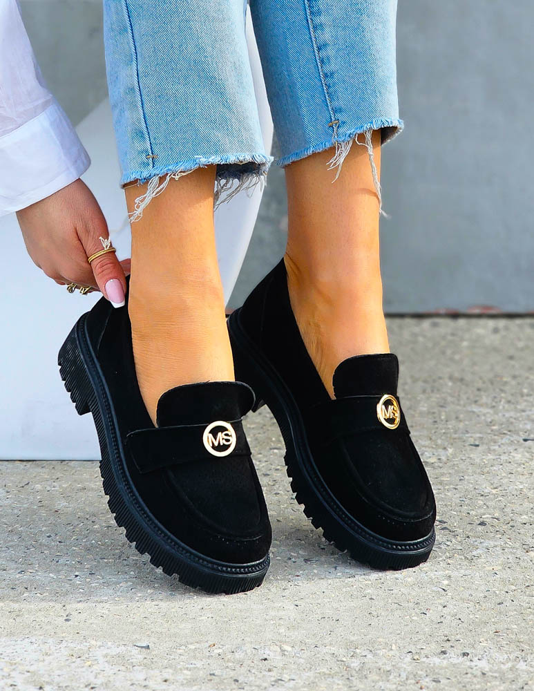 Czarne Mokasyny Na Grubej Podeszwie She Is My