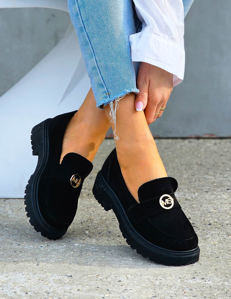 Czarne Eleganckie Zamszowe Mokasyny Brillant