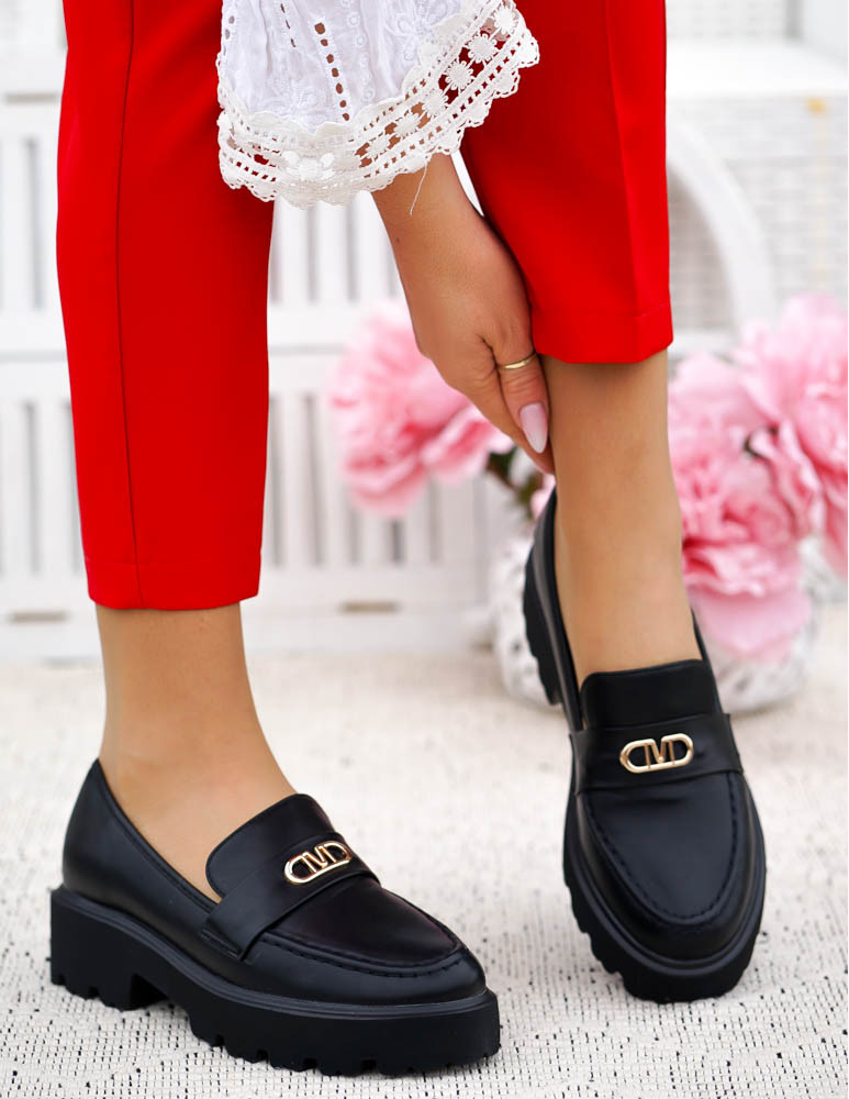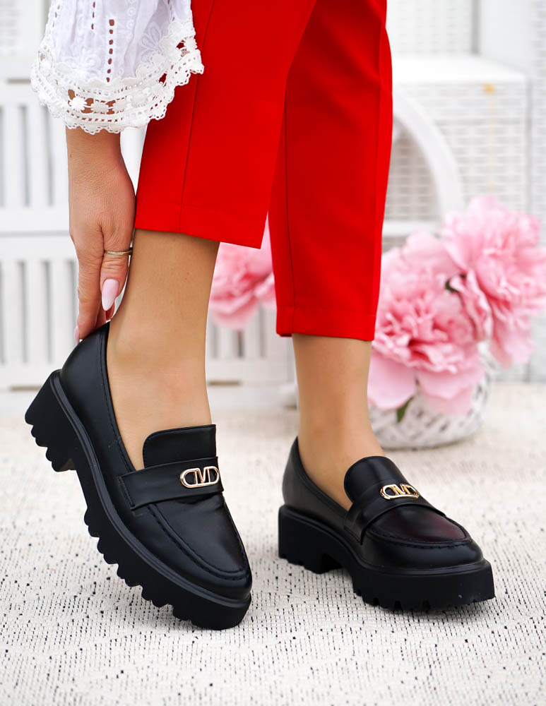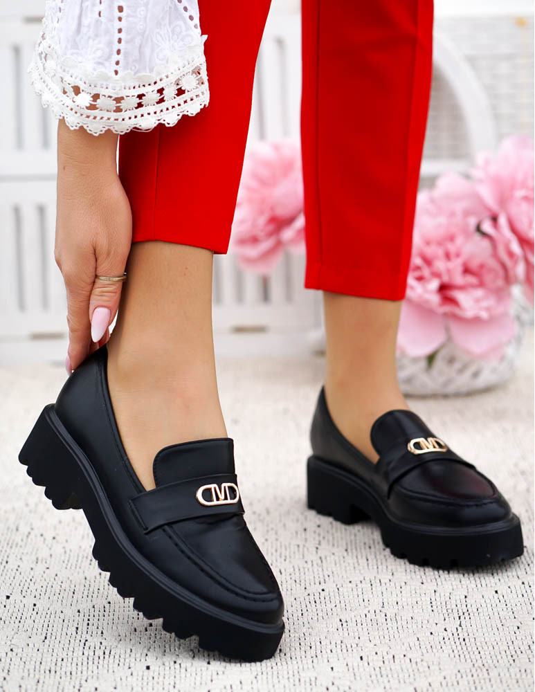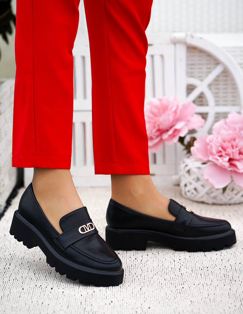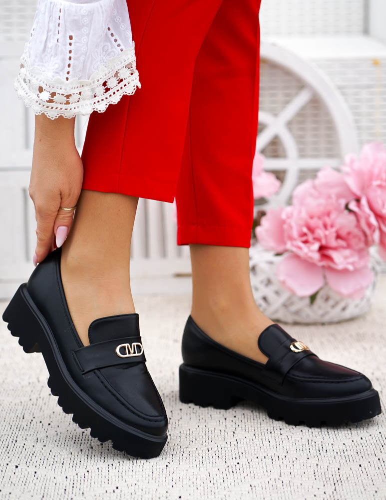 - Kod produktu: Czarne Mokasyny Na Grubej Podeszwie Ze Skóry C Klarie