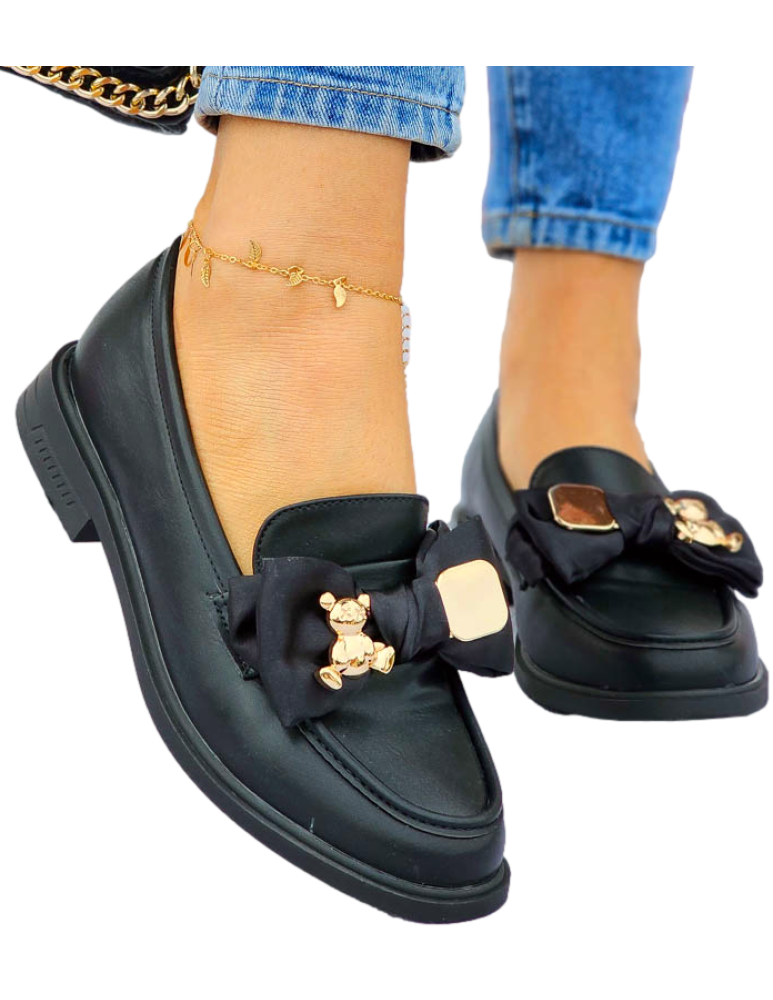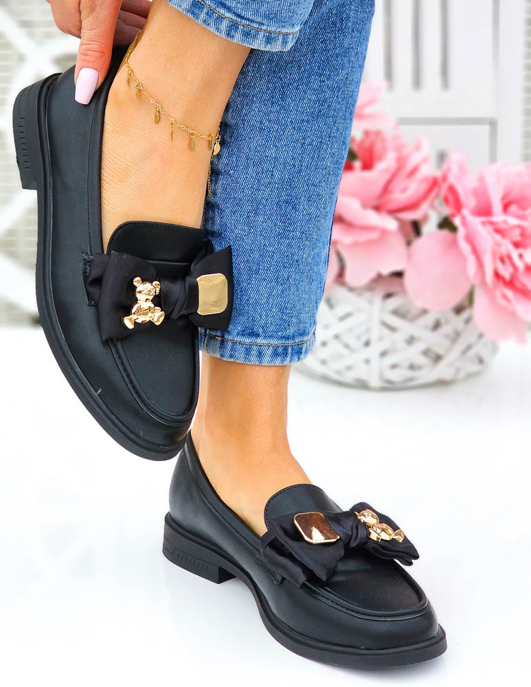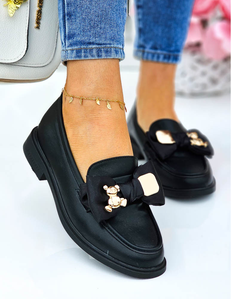 Czarne Mokasyny Z Kokardą i Misiem