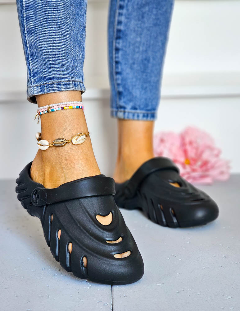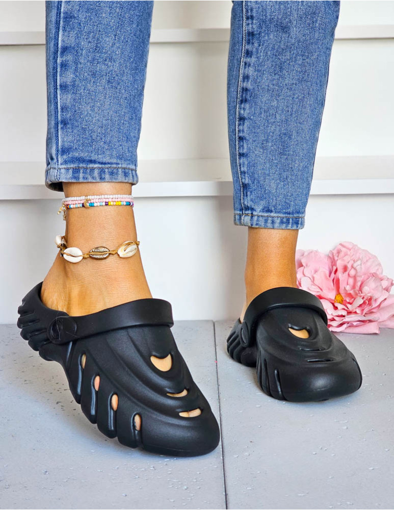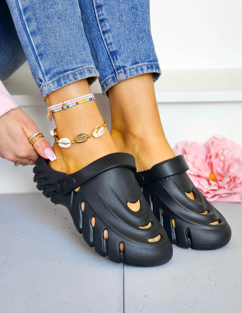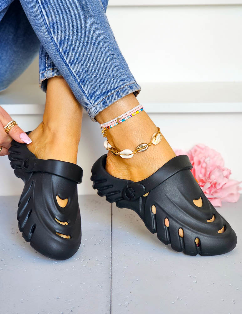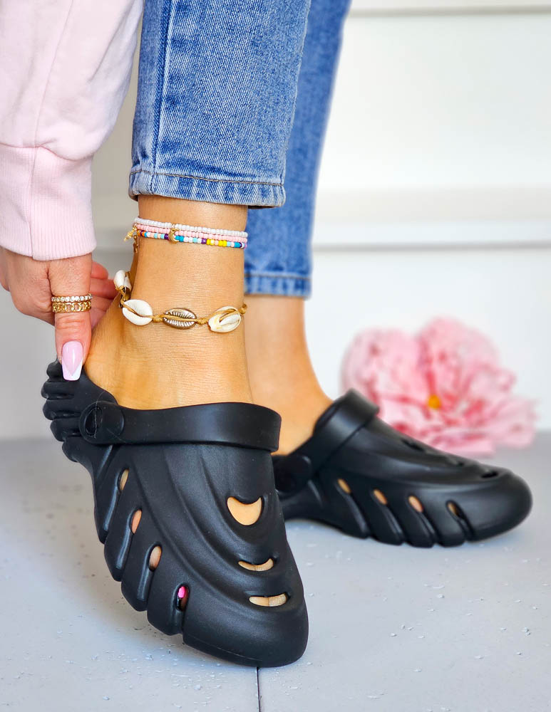 Czarne Piankowe Klapki Kroksy Zakryte Palce Modern
