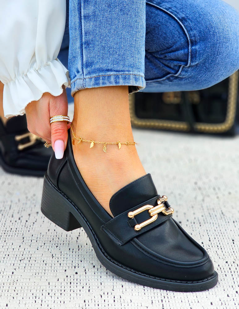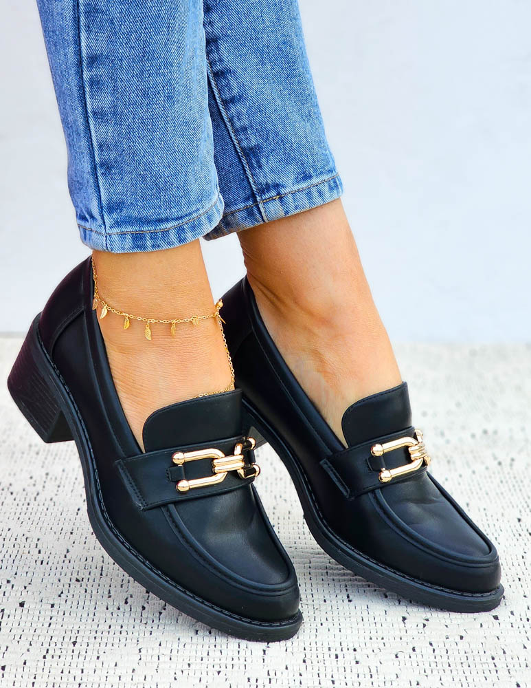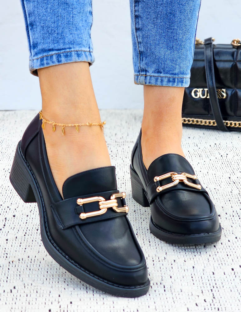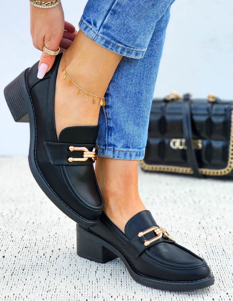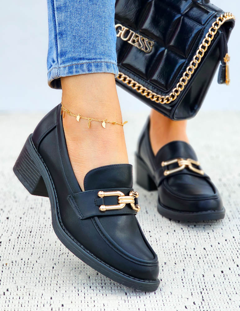 Czarne Półbuty Mokasyny Na Klokcu Ze Skóry Sharise