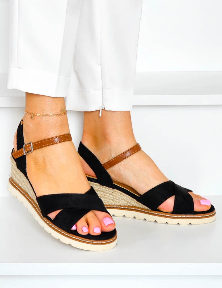 Czarne Snadały Damskie Na Koturnie Dahab