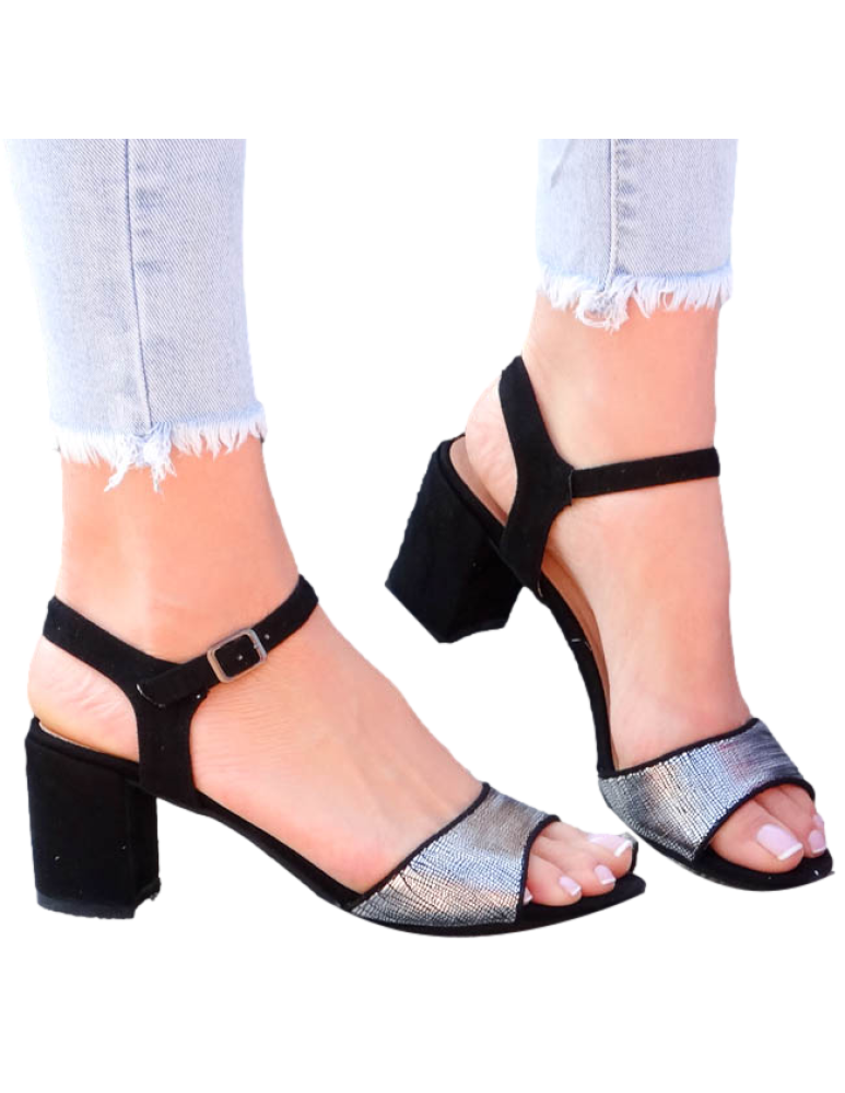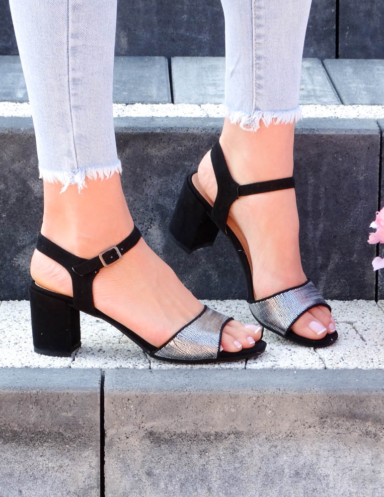 Czarne Sandały Damskie Na Niskim Obcasie Silver