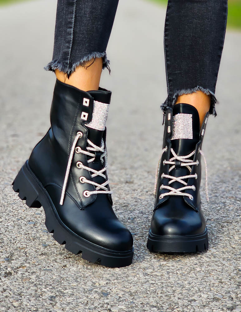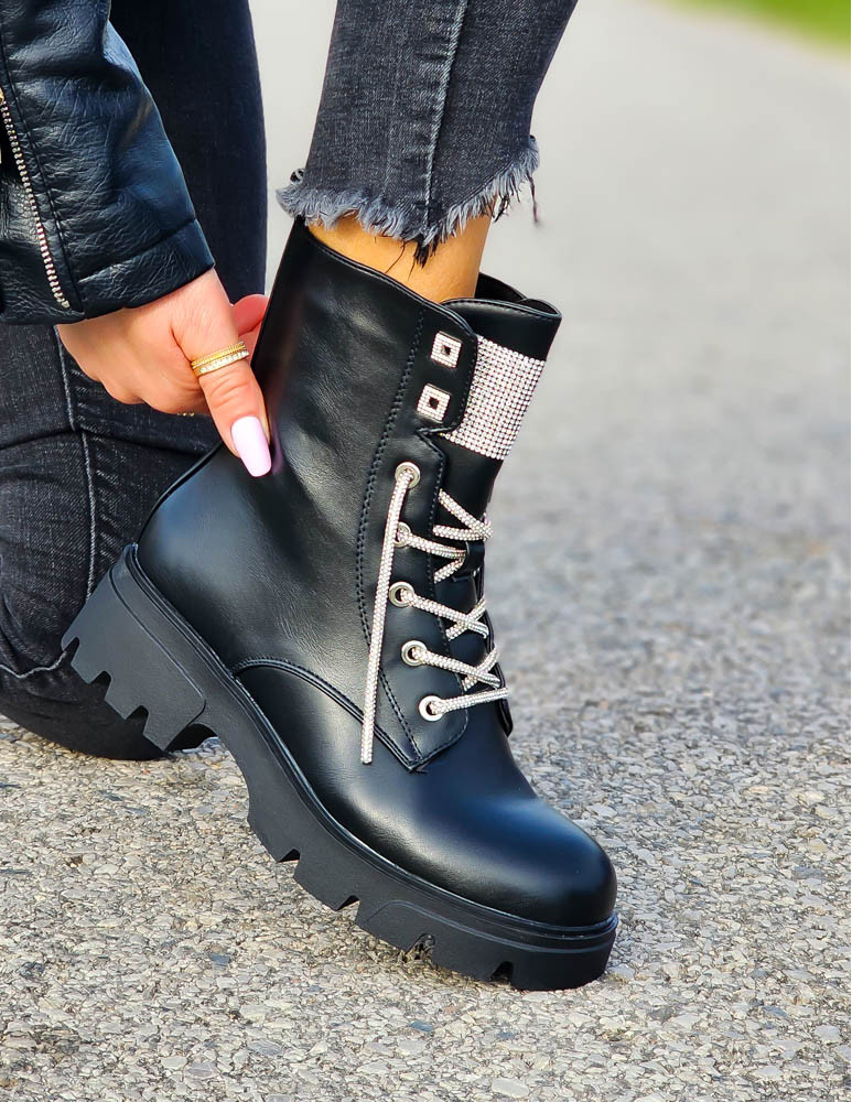 Czarne Botki Workery Glany Damskie Favritto