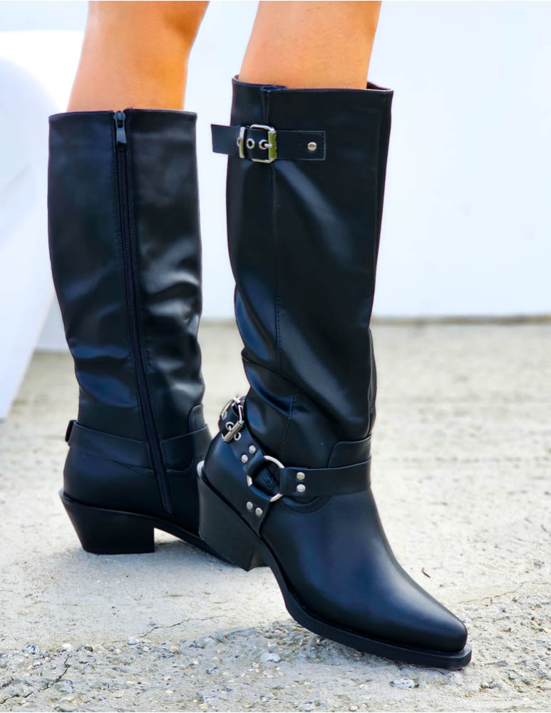 Czarne Skórzane Botki Kozaki Kowbojki My Step