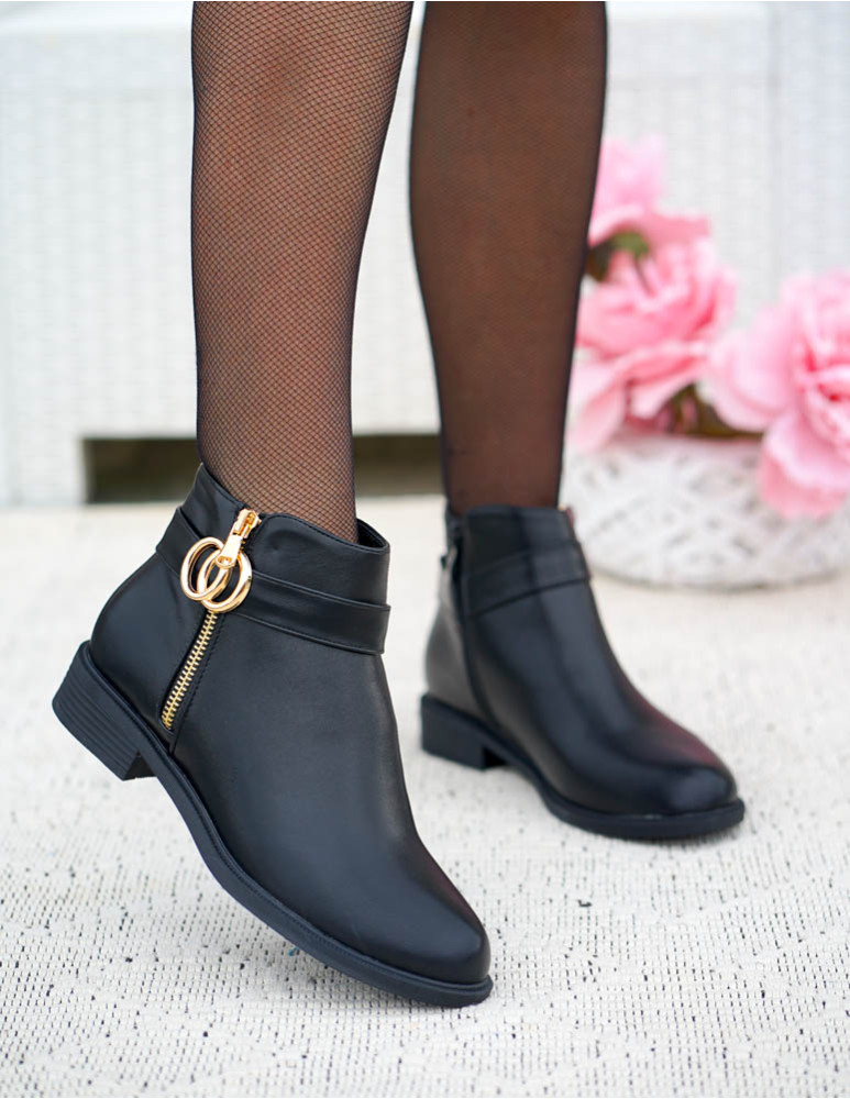 Czarne Skórzane Botki Sztyblety Gold Moon