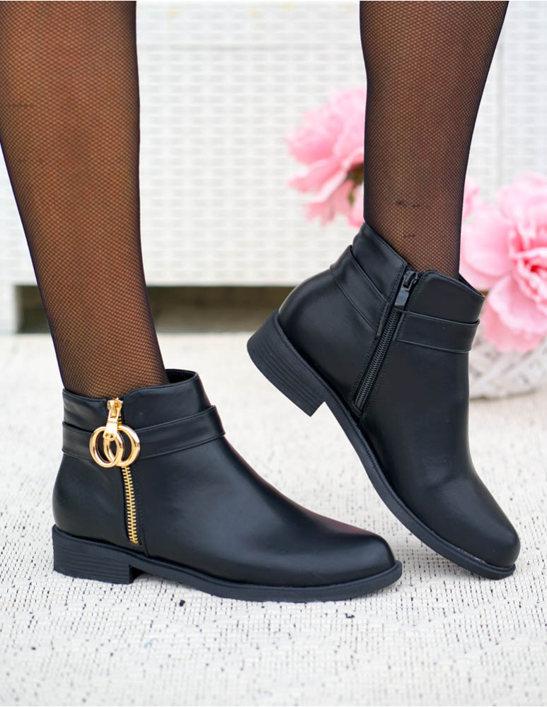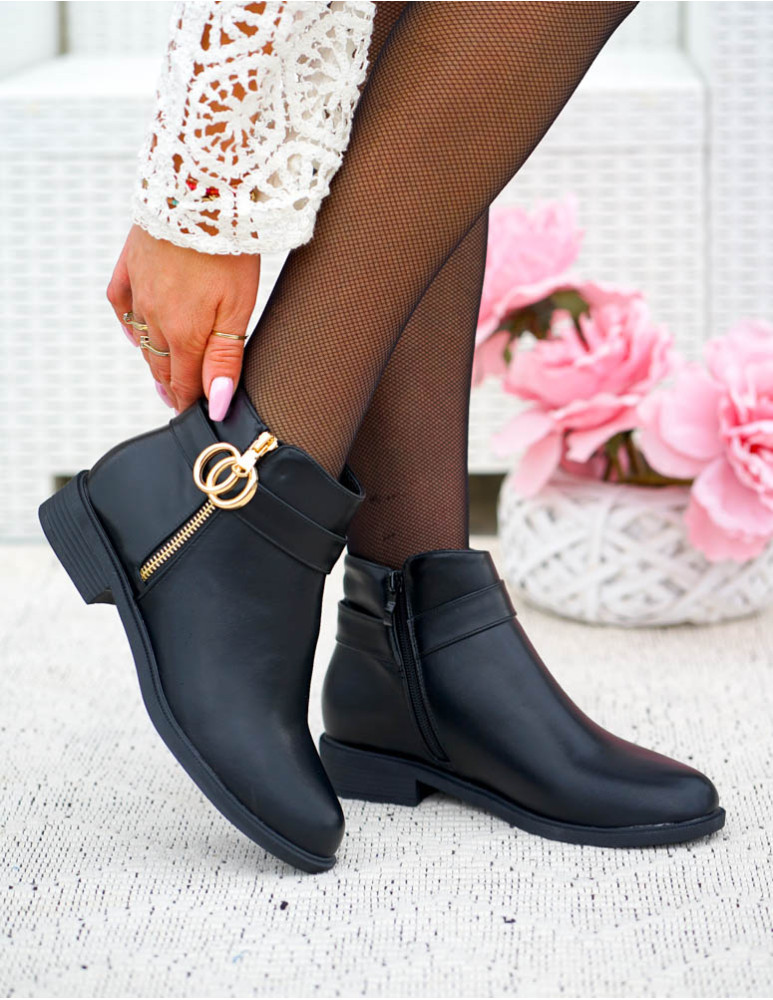 ❤ Modne i tanie buty on-line❤Klasyczne, czarne botki na niskim obcasie❤ Botki a`lla kowbojki ze..