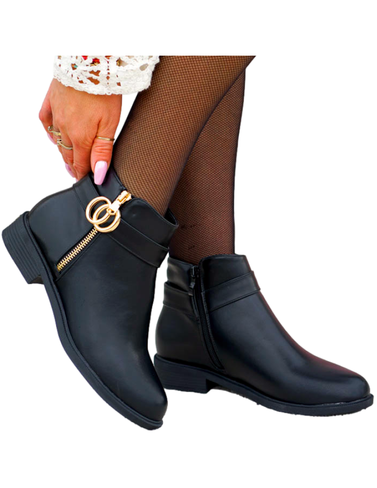 Czarne Botki Workery Glany Damskie Favritto