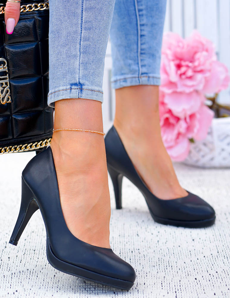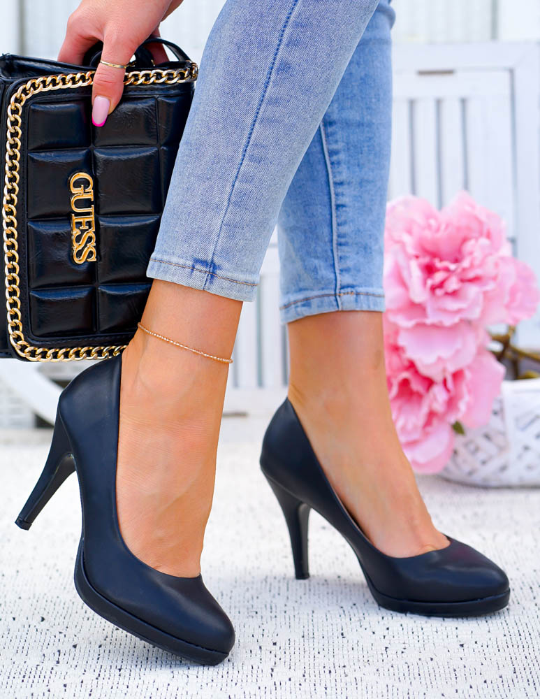 ❤Piękne, czarne, matowe czółenka damskie na stabilnym obcasie-szpilce