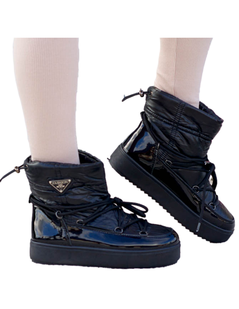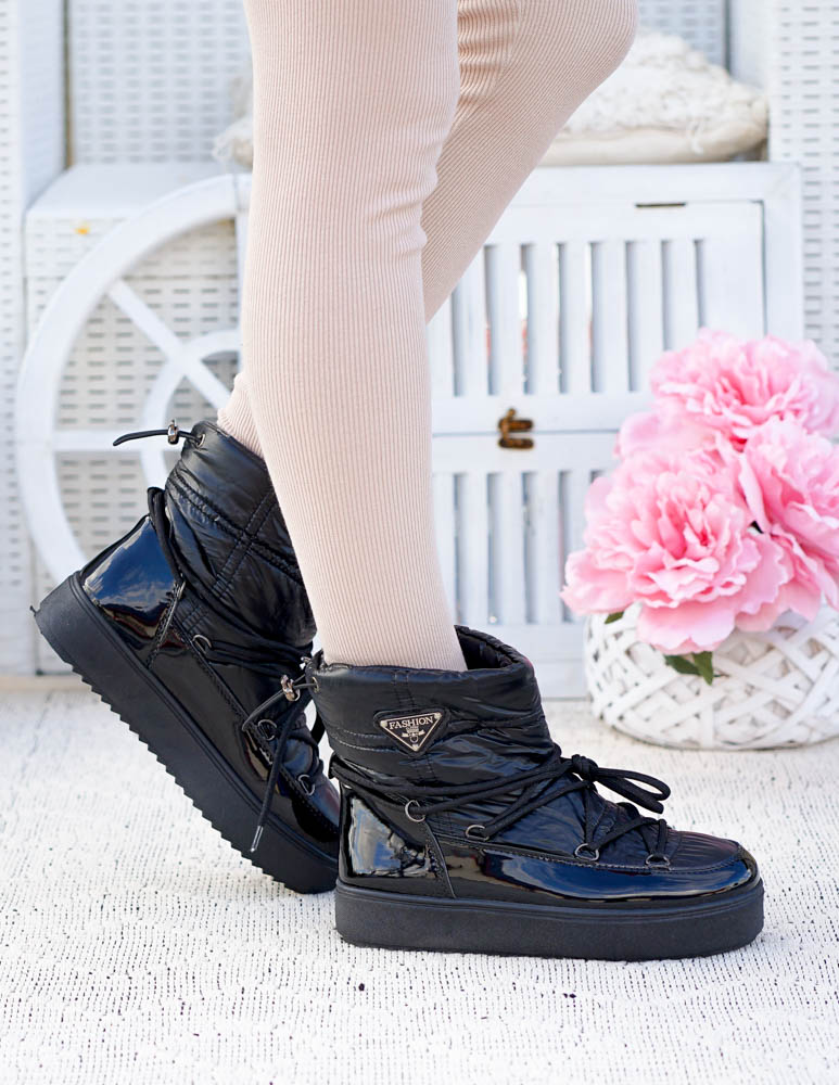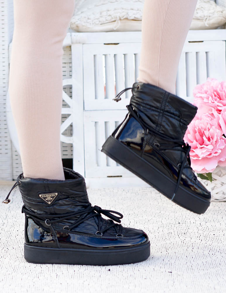 Eleganckie Krótkie Czarne Lakierowane Botki Z Suwakiem