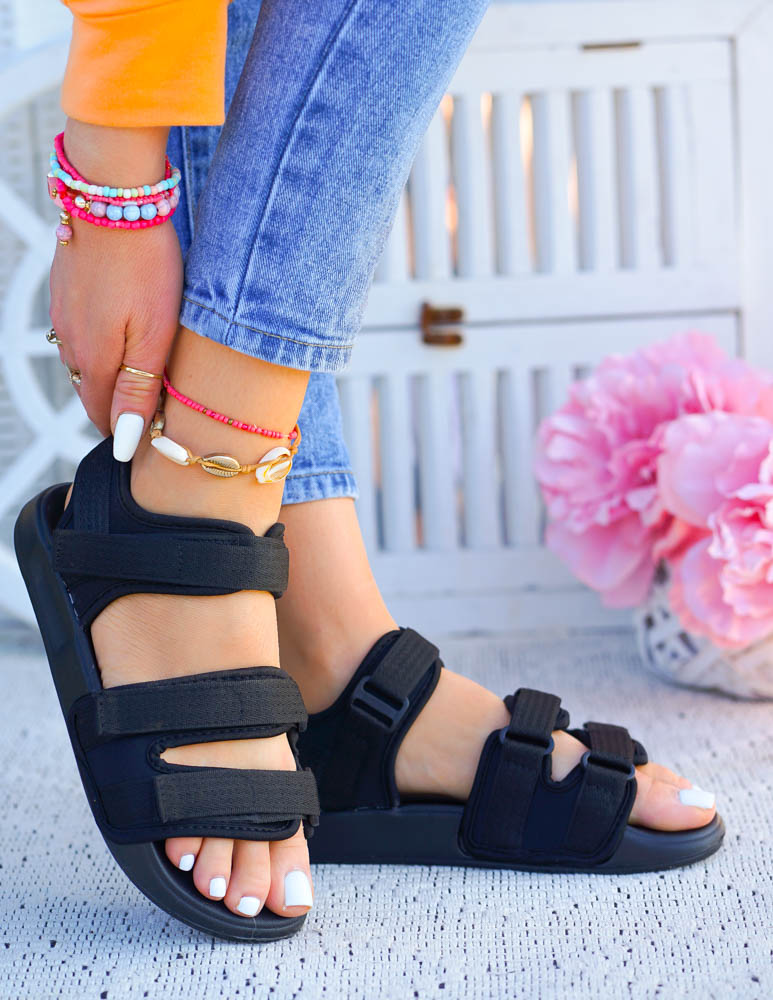 Czarne Sportowe Sandały Na Paski Na Lato Sun