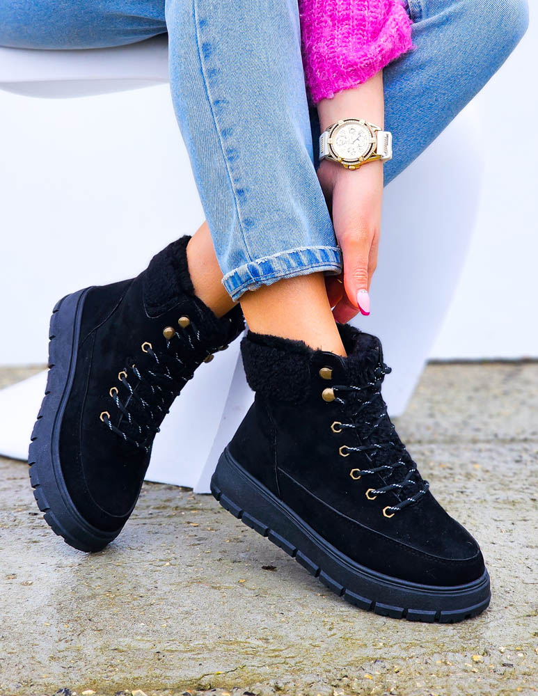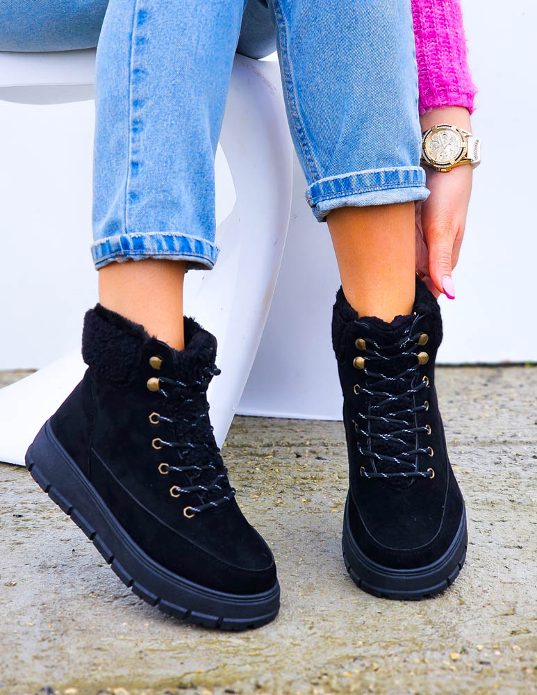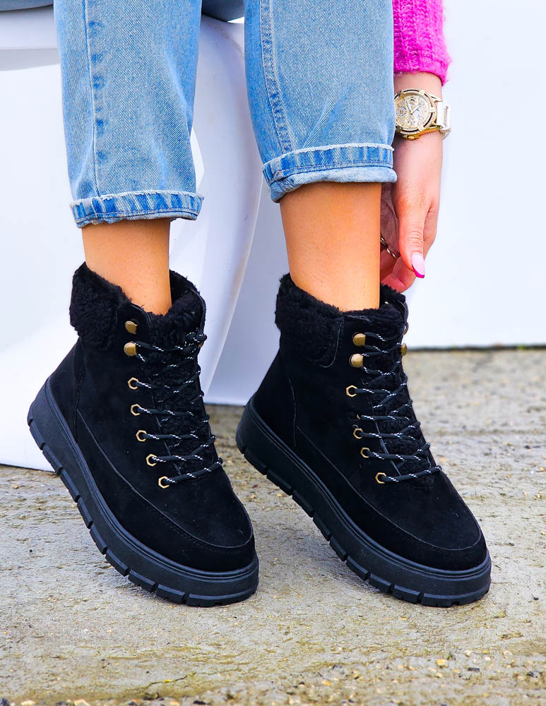 Krótkie Czarne Zamszowe Botki Na Koturnie Save