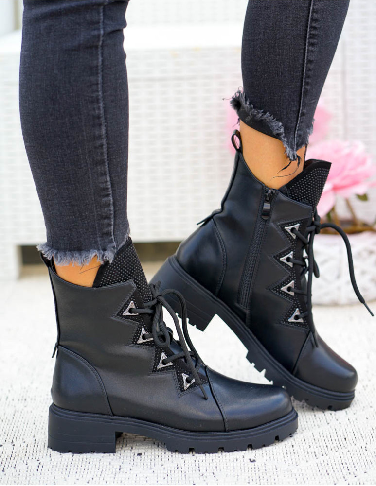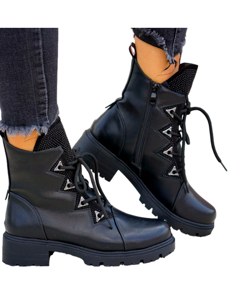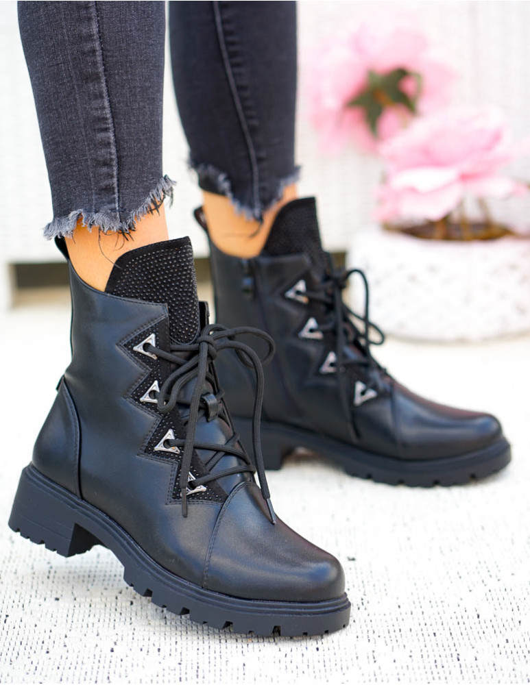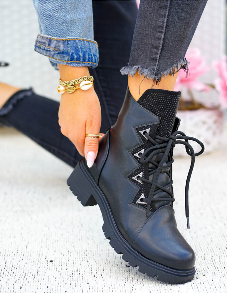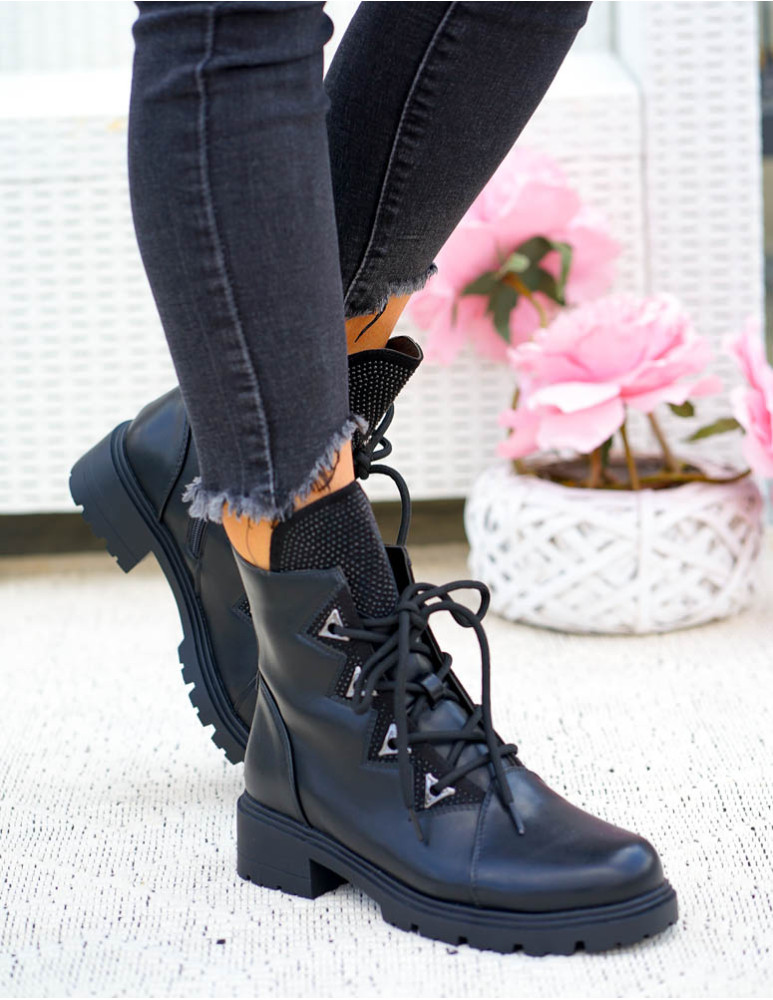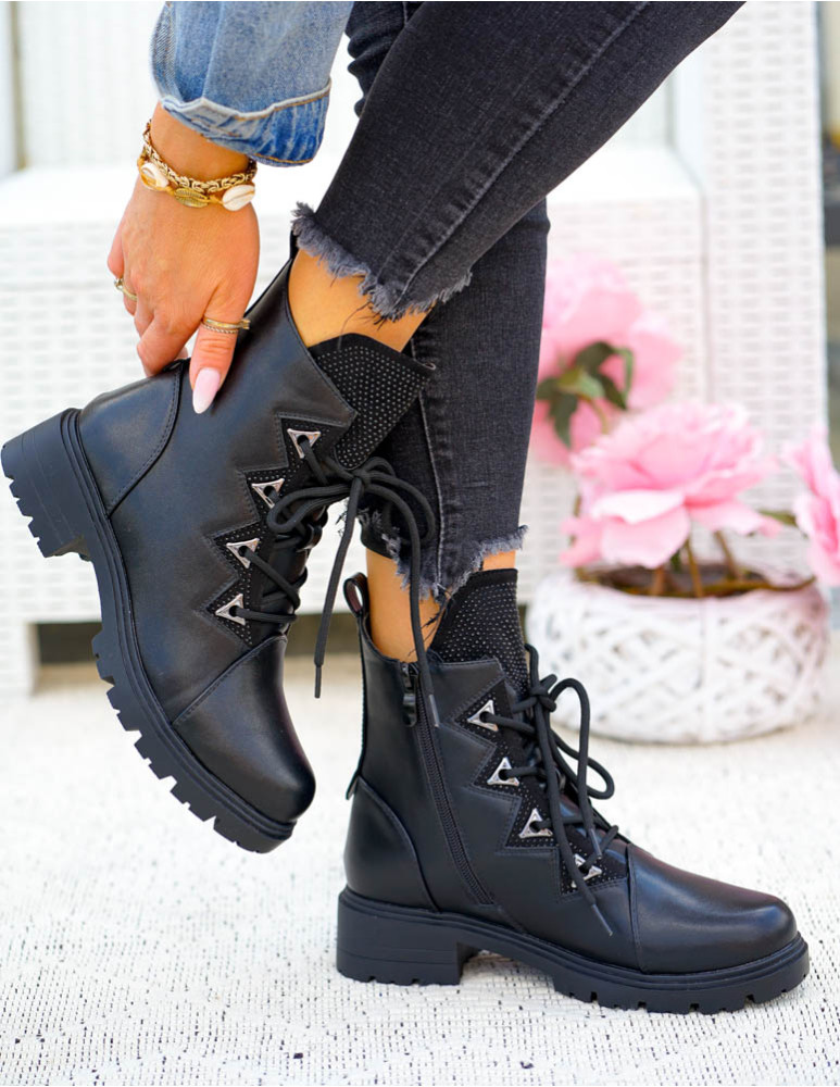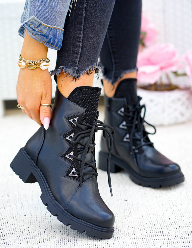 - Kod produktu: Czarne Sznurowane Botki Damskie Oficerki Design