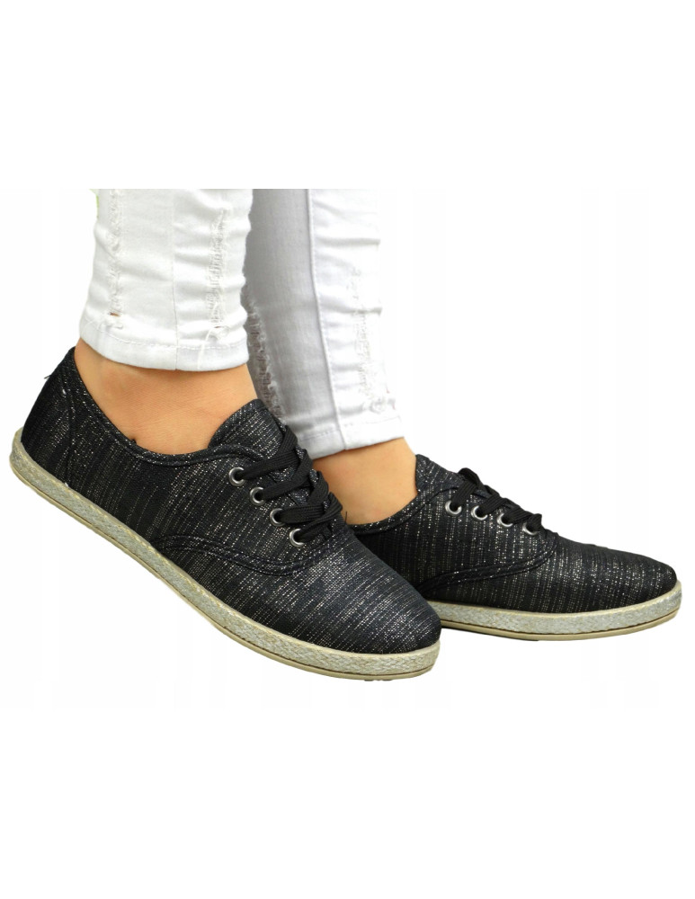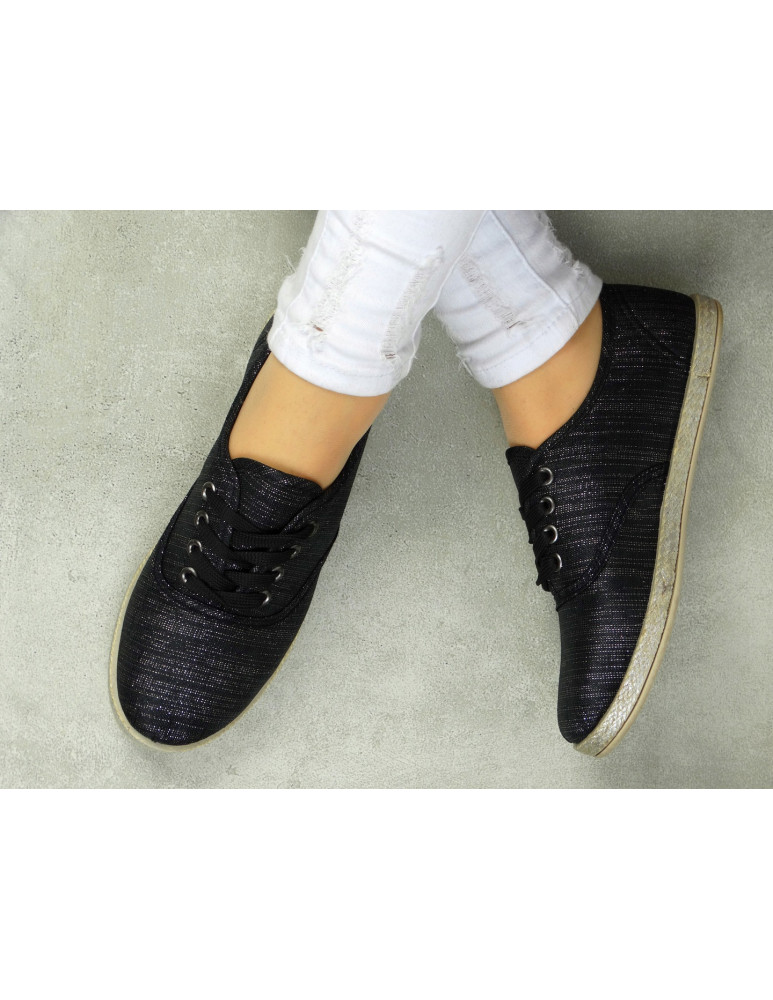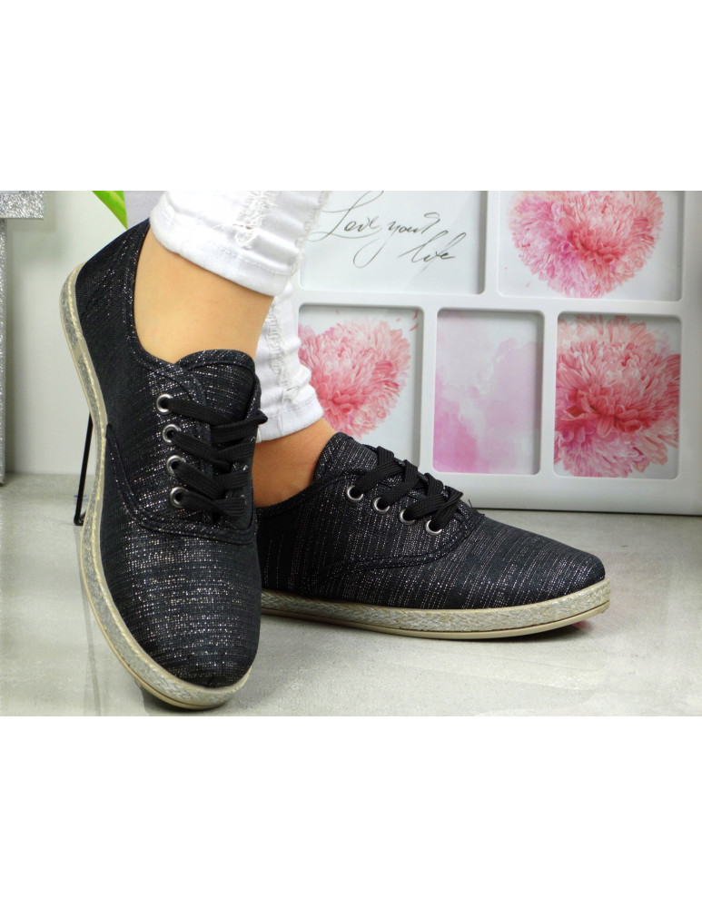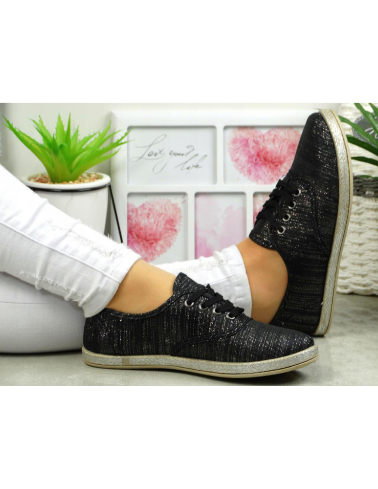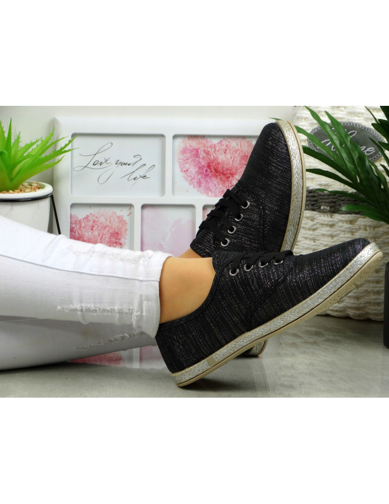 CZARNE TENISÓWKI trampki ze srebrną poświatą