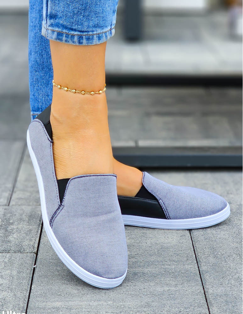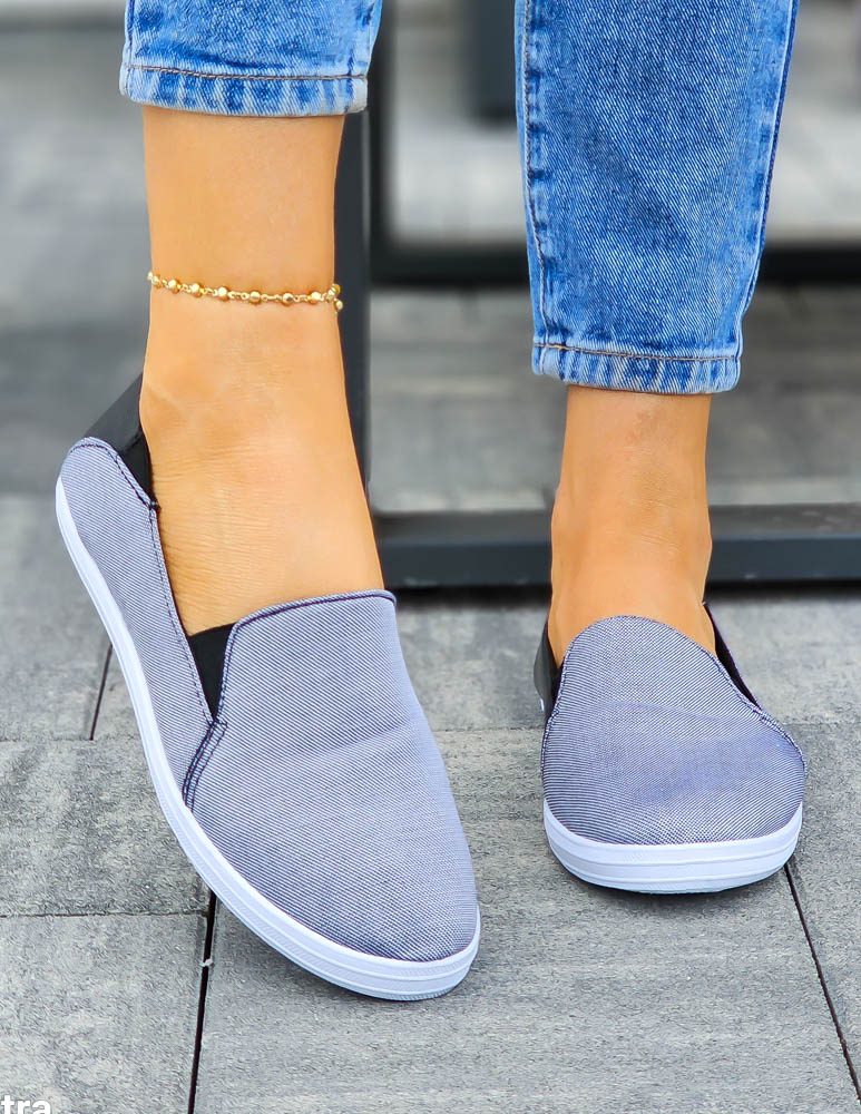Klasyczne Tenisówki Trampki Damskie Granatowe Wsuwane