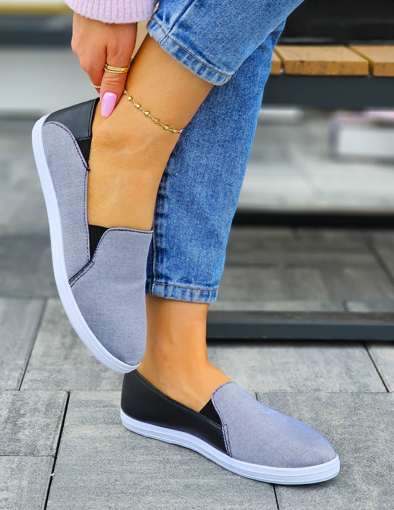 ❤Granatowe, klasyczne, materiałowe tenisówki z gumakmi❤Wysyłka 24 h❤Lekkie, wygodne buty damski..