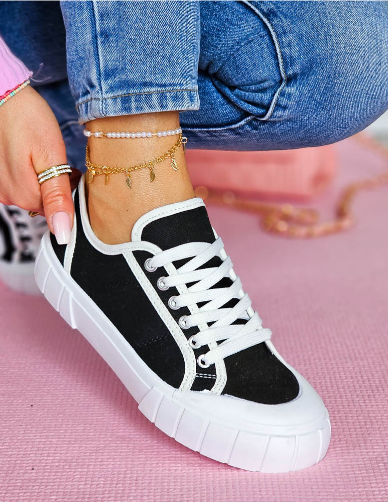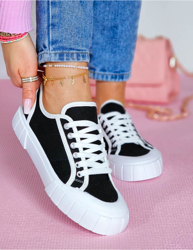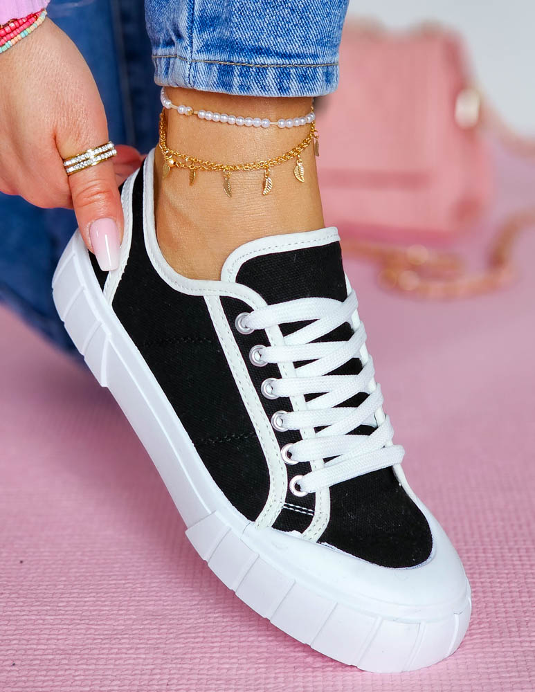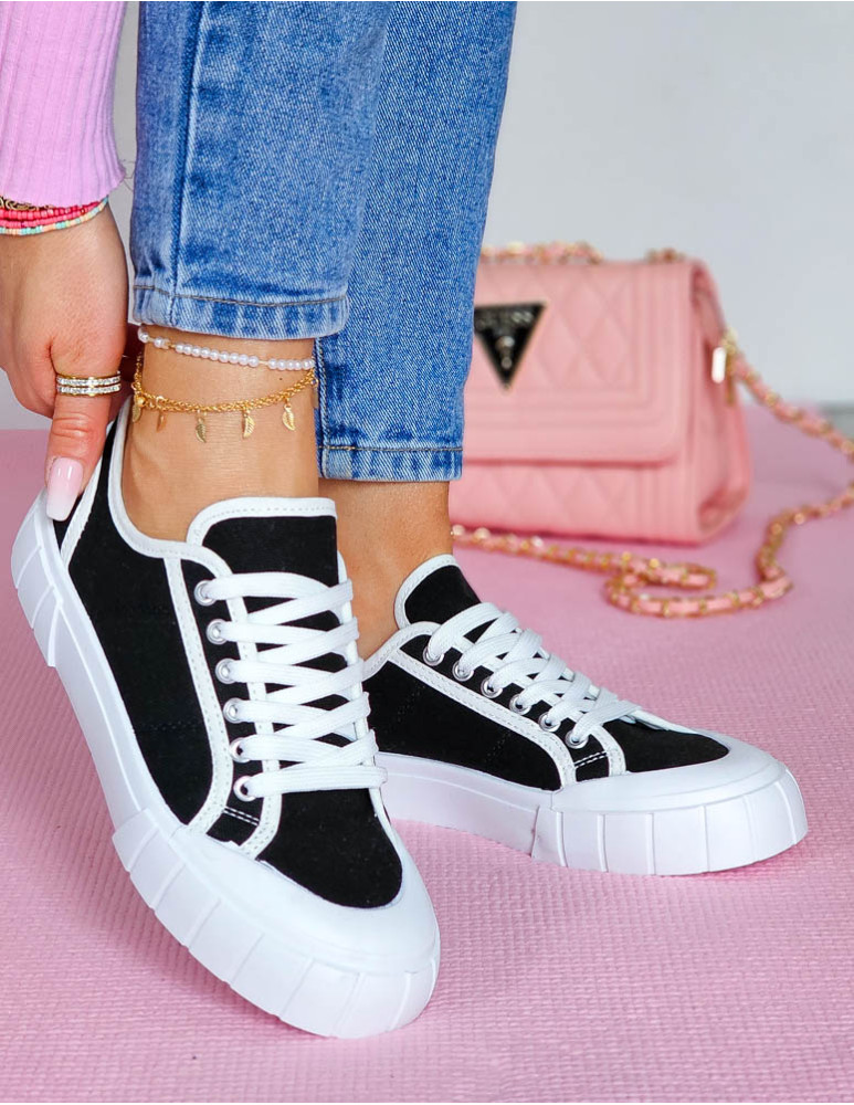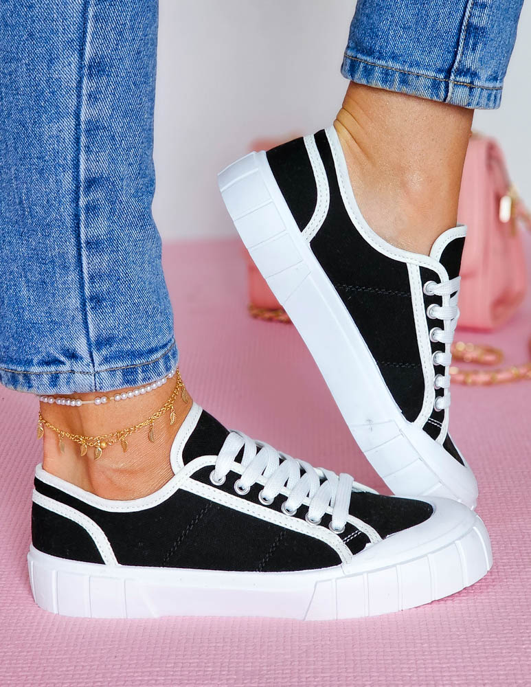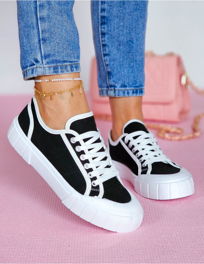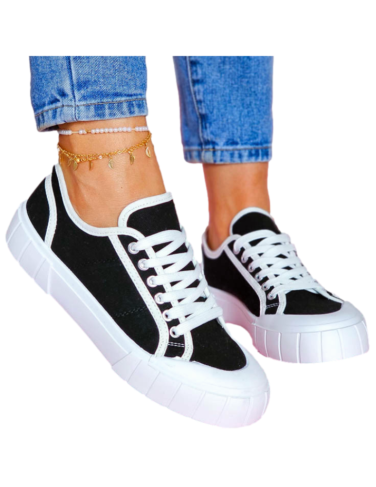 Czarne Trampki Damskie Na Grubej Podeszwie Leves
