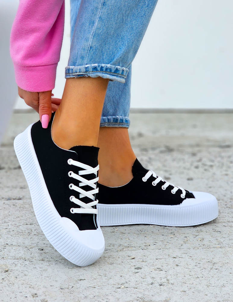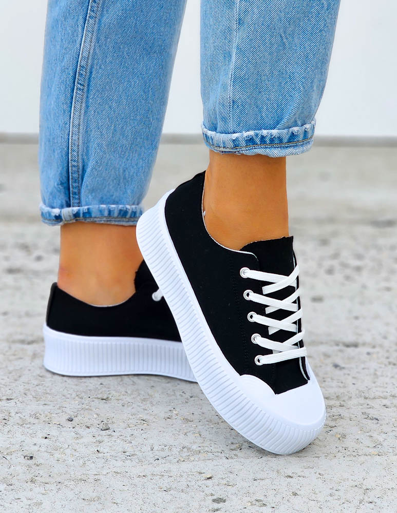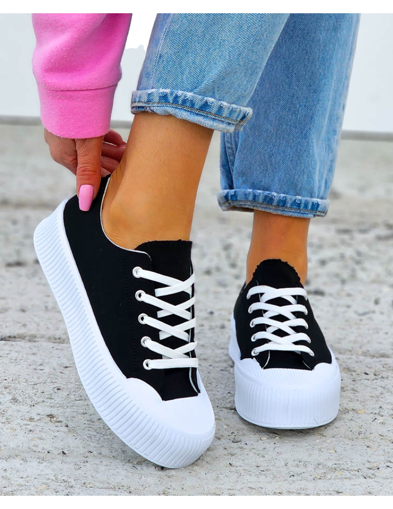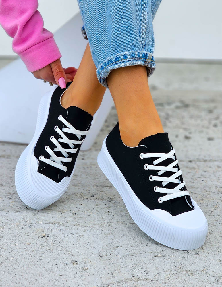 Czarne Trampki Na Grubej Podeszwie Haidra