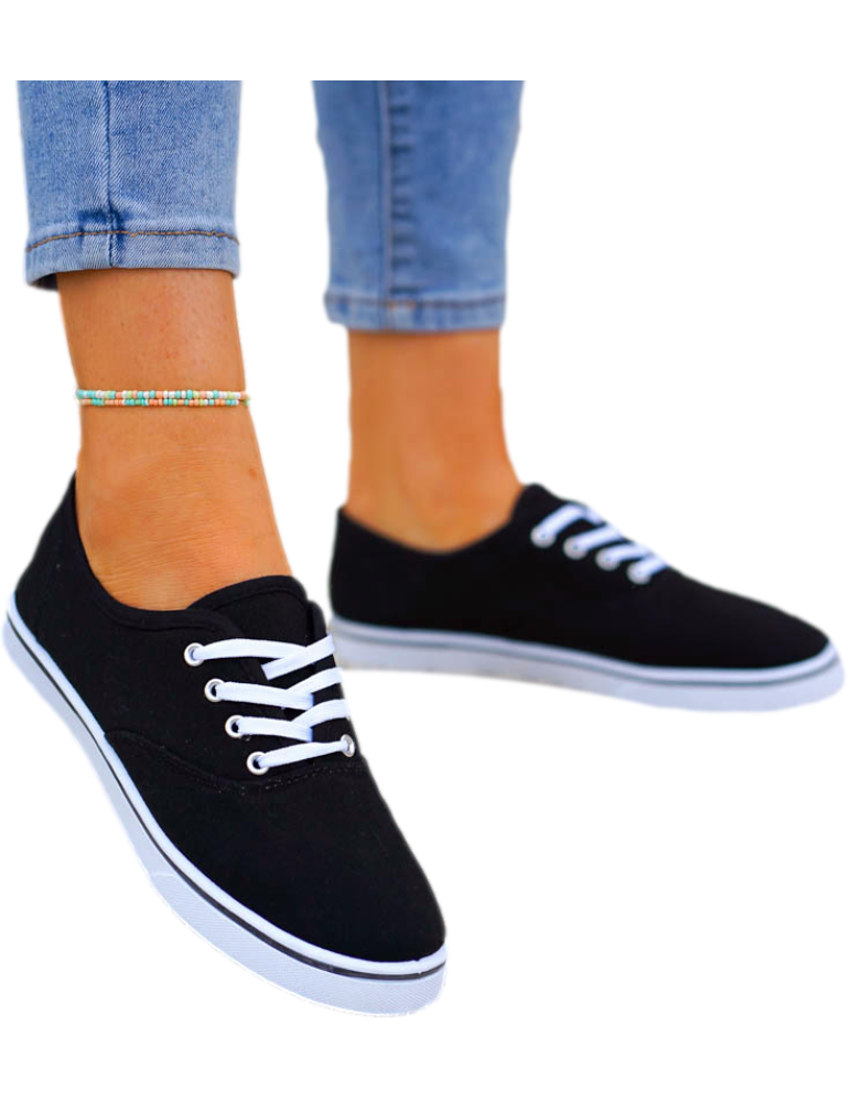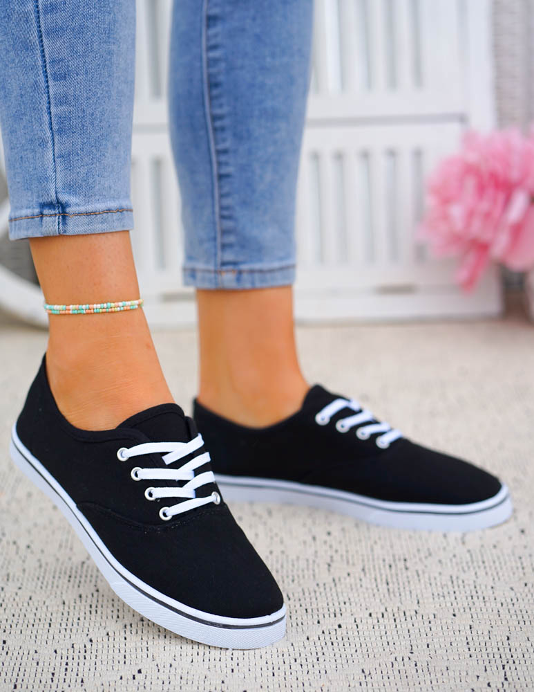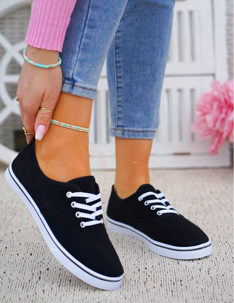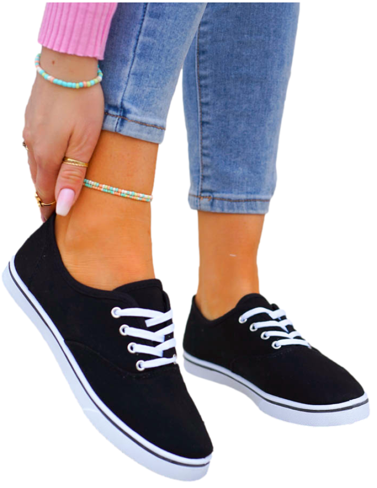 Czarne Klasyczne Sznurowane Tenisówki Damskie Ada