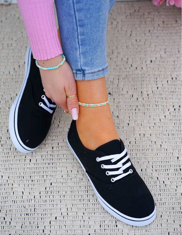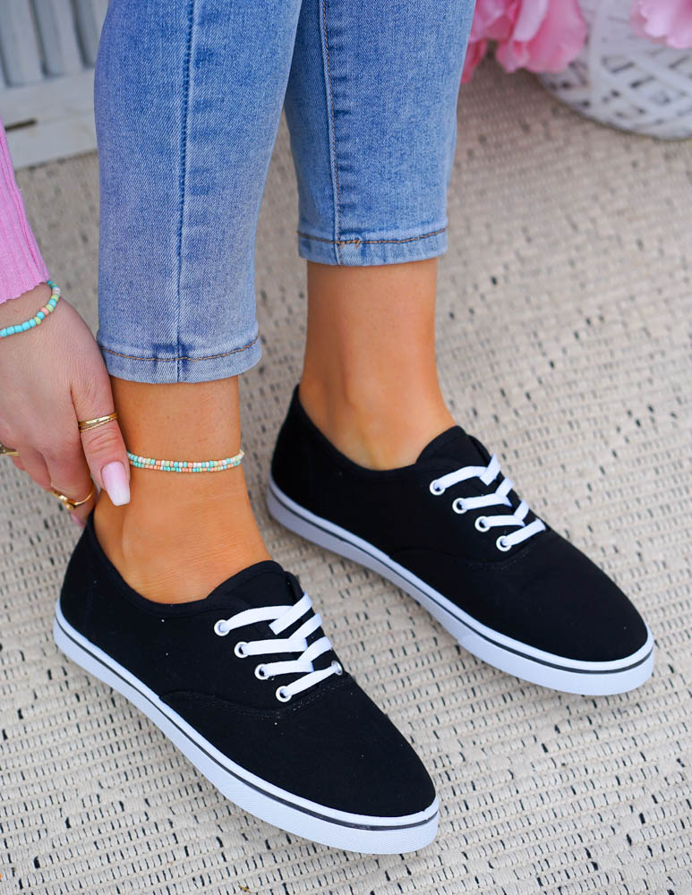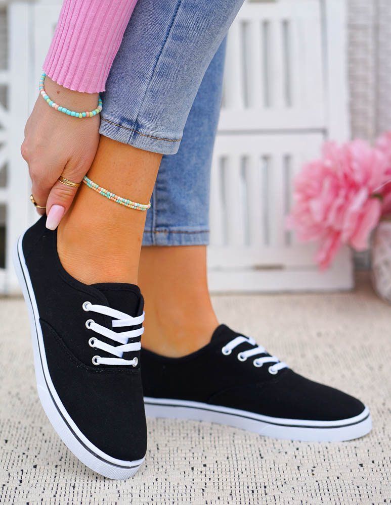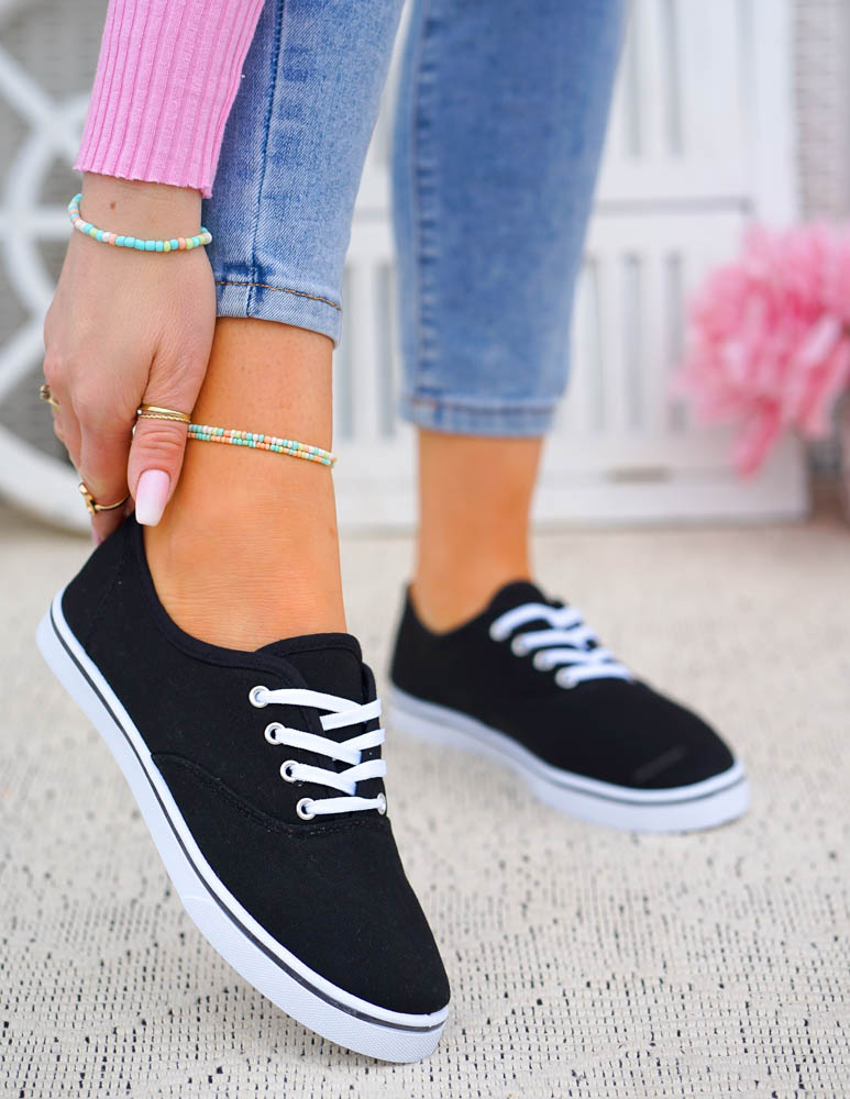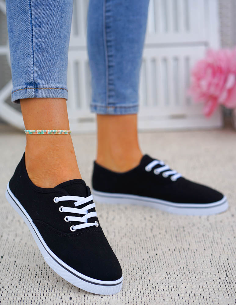 Czarne Klasyczne Sznurowane Tenisówki Damskie Ada