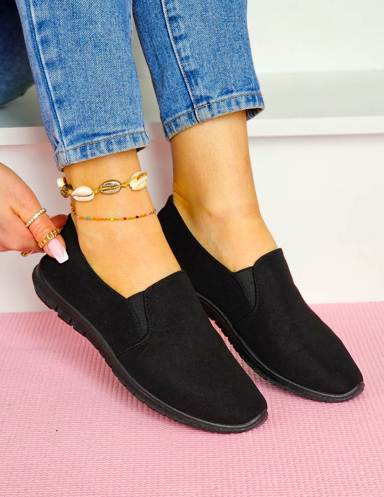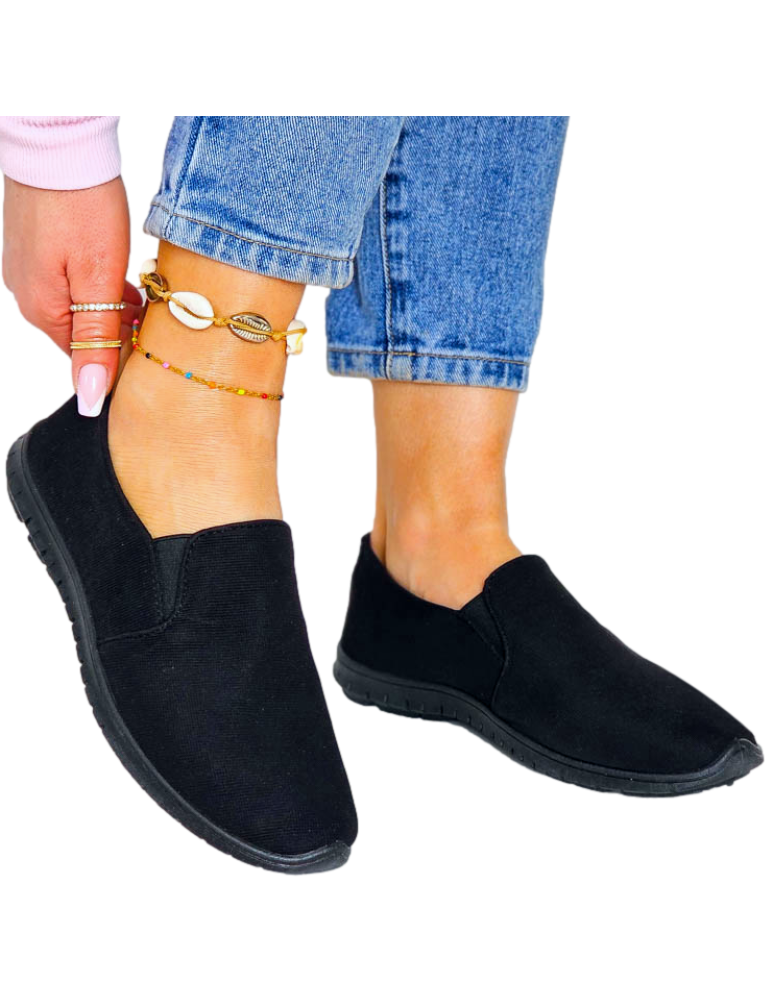 Czarne Trampki Tenisówki Lycra Elastyczne z Gumką