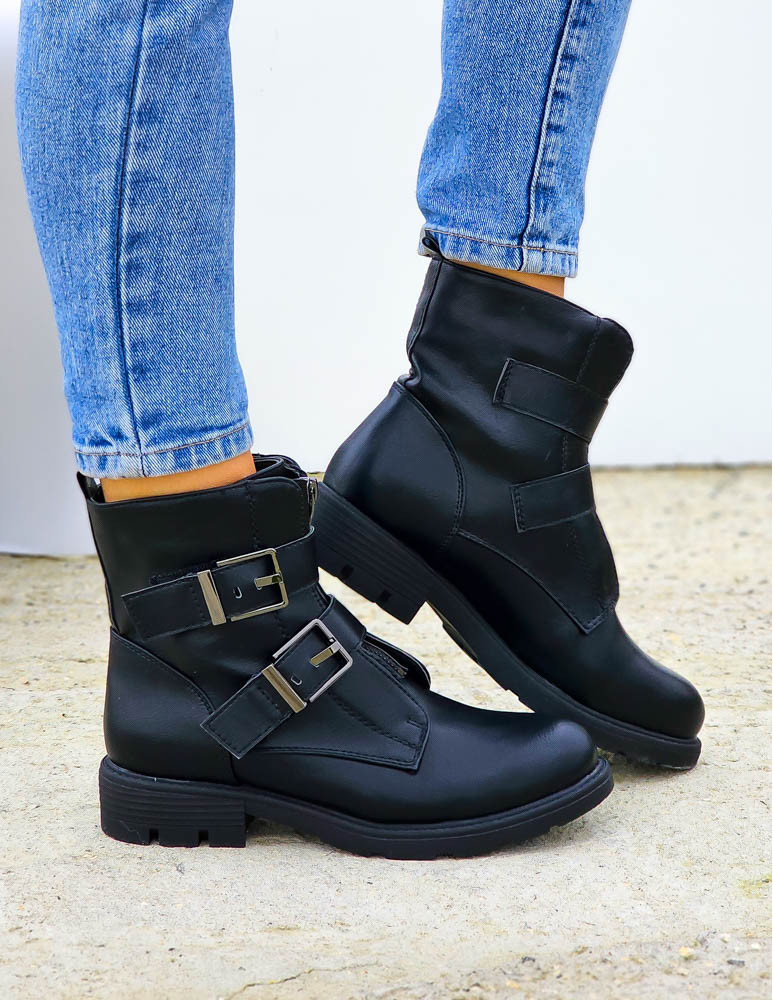 Czarne Workery Na Grubej Podeszwie Modivs